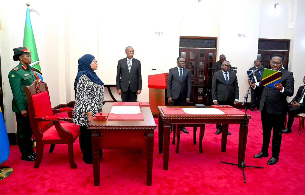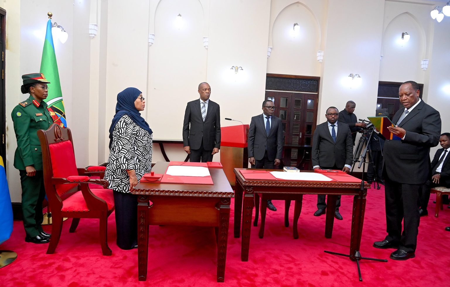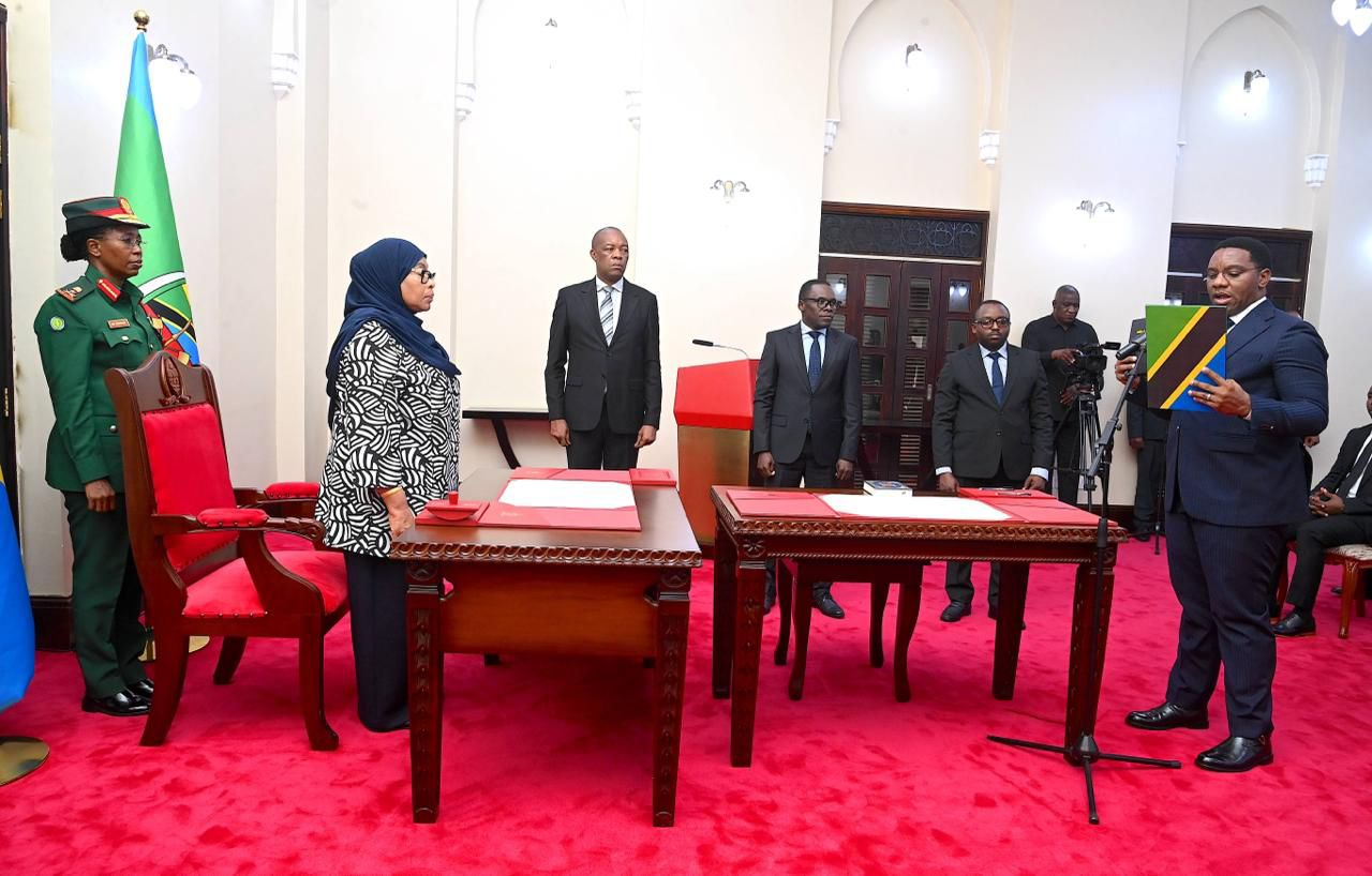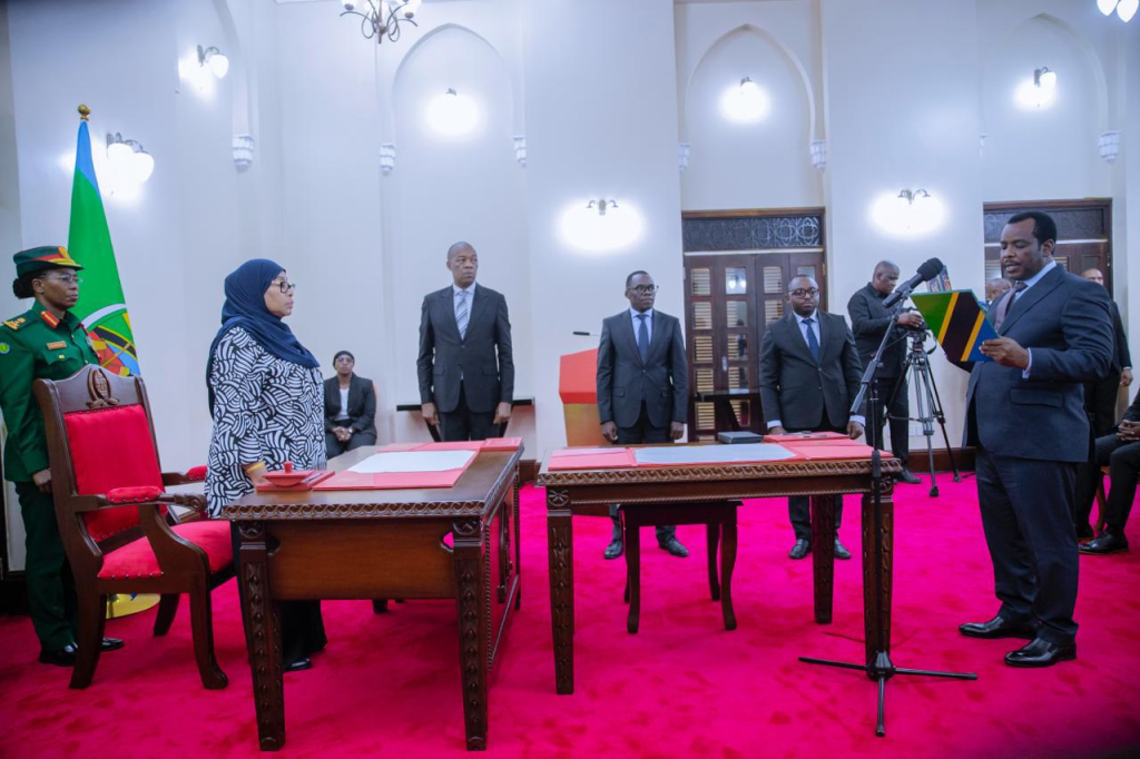 Rais wa Jamhuri ya Muungano wa Tanzania, Mhe. Dkt. Samia Suluhu Hassan akizungumza mara baada ya kuwaapisha Viongozi mbalimbali, Ikulu Chamwino Mkoani Dodoma tarehe 13 Januari,2026.Rais wa Jamhuri ya Muungano wa Tanzania, Mhe. Dkt. Samia Suluhu Hassan akimuapisha Mhe. Paul Christian Makonda kuwa Waziri wa Habari, Utamaduni, Sanaa na Michezo kwenye hafla iliyofanyika Ikulu Chamwino mkoani Dodoma tarehe 13 Januari,2026.Rais wa Jamhuri ya Muungano wa Tanzania, Mhe. Dkt. Samia Suluhu Hassan akimuapisha Profesa Palamagamba John Adan Kabudi kuwa Waziri wa Nchi, Ofisi ya Rais, Ikulu (Kazi Maalum) kwenye hafla iliyofanyika Ikulu Chamwino mkoani Dodoma tarehe 13 Januari,2026.Rais wa Jamhuri ya Muungano wa Tanzania, Mhe. Dkt. Samia Suluhu Hassan akimuapisha Mhe. Patrobas Paschal Katambi kuwa Waziri wa Mambo ya Ndani ya Nchi kwenye hafla iliyofanyika Ikulu Chamwino mkoani Dodoma tarehe 13 Januari,2026.Rais wa Jamhuri ya Muungano wa Tanzania, Mhe. Dkt. Samia Suluhu Hassan akimuapisha Mhe. Dennis Lazaro Londo kuwa Naibu Waziri wa Viwanda na Biashara kwenye hafla iliyofanyika Ikulu Chamwino mkoani Dodoma tarehe 13 Januari,2026.Rais wa Jamhuri ya Muungano wa Tanzania, Mhe. Dkt. Samia Suluhu Hassan akimuapisha Mhe. Ayoub Mohamed Mahmoud kuwa Naibu Waziri wa Mambo ya Ndani ya Nchi kwenye hafla iliyofanyika Ikulu Chamwino mkoani Dodoma tarehe 13 Januari,2026.Rais wa Jamhuri ya Muungano wa Tanzania, Mhe. Dkt. Samia Suluhu Hassan akimuapisha Dkt. Richard Stanslaus Muyungi kuwa Katibu Mkuu, Ofisi ya Makamu wa Rais (Muungano na Mazingira) kwenye hafla iliyofanyika Ikulu Chamwino mkoani Dodoma tarehe 13 Januari,2026Rais wa Jamhuri ya Muungano wa Tanzania, Mhe. Dkt. Samia Suluhu Hassan akimuapisha Mhandisi Zena Ahmed Said kuwa Balozi kwenye hafla iliyofanyika Ikulu Chamwino mkoani Dodoma tarehe 13 Januari,2026.Rais wa Jamhuri ya Muungano wa Tanzania, Mhe. Dkt. Samia Suluhu Hassan akimuapisha Ndugu Waziri Rajab Salum kuwa Balozi kwenye hafla iliyofanyika Ikulu Chamwino mkoani Dodoma tarehe 13 Januari,2026.ais wa Jamhuri ya Muungano wa Tanzania, Mhe. Dkt. Samia Suluhu Hassan akimuapisha Mhandisi Cyprian John Luhemeja kuwa Balozi kwenye hafla iliyofanyika Ikulu Chamwino mkoani Dodoma tarehe 13 Januari,2026.Viongozi Wateule wakiapa Kiapo cha Maadili kwenye hafla iliyofanyika Ikulu Chamwino mkoani Dodoma tarehe 13 Januari,2026Makamu wa Rais wa Jamhuri ya Muungano wa Tanzania, Mhe. Balozi Dkt. Emanuel John Nchimbi akiwa pamoja na Waziri Mkuu wa Jamhuri ya Muungano wa Tanzania Mhe. Dkt. Mwigulu Lameck Nchemba katika hafla ya uapisho wa viongozi mbalimbali, Ikulu Mkoani Dodoma tarehe 13 Januari, 2026