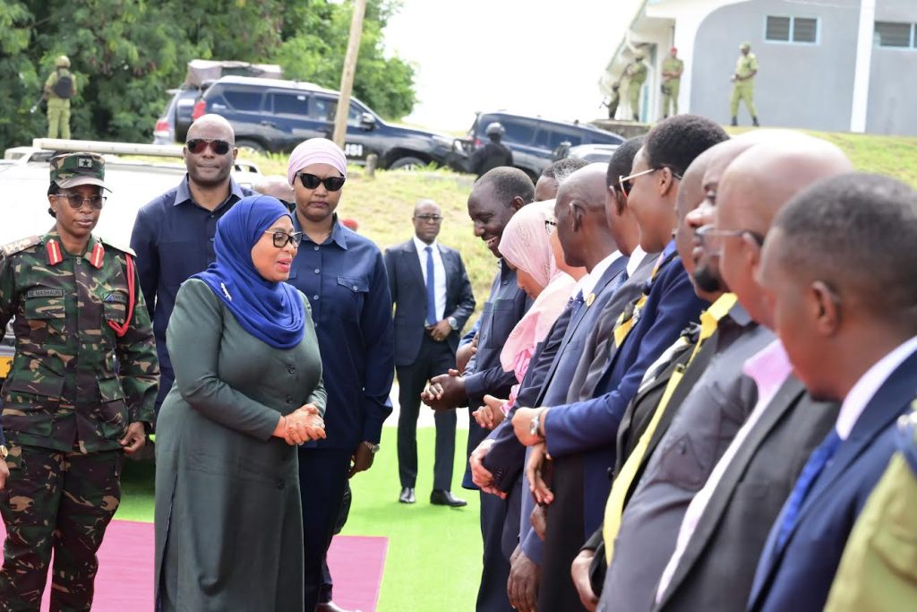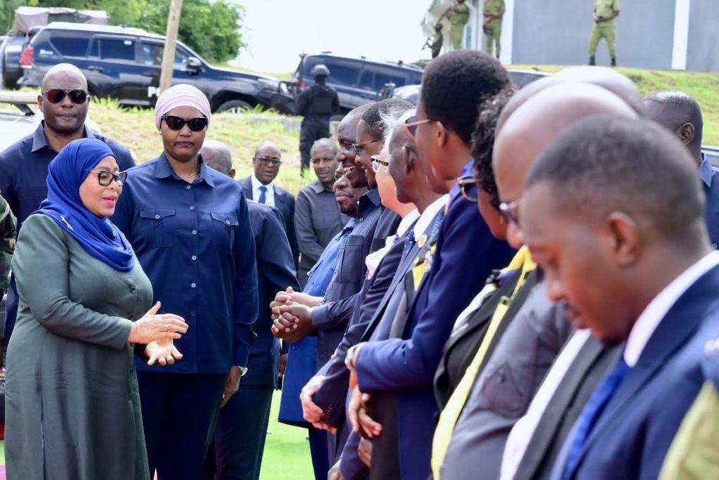Rais wa Jamhuri ya Muungano wa Tanzania, Mhe. Dkt. Samia Suluhu Hassan akisalimiana na viongozi mbalimbali mara baada ya kuwasili katika Makao Makuu ya Shirika la Uvuvi Tanzania (TAFICO) Kigamboni Jijini Dar es Salaam tarehe 25 Aprili, 2026.