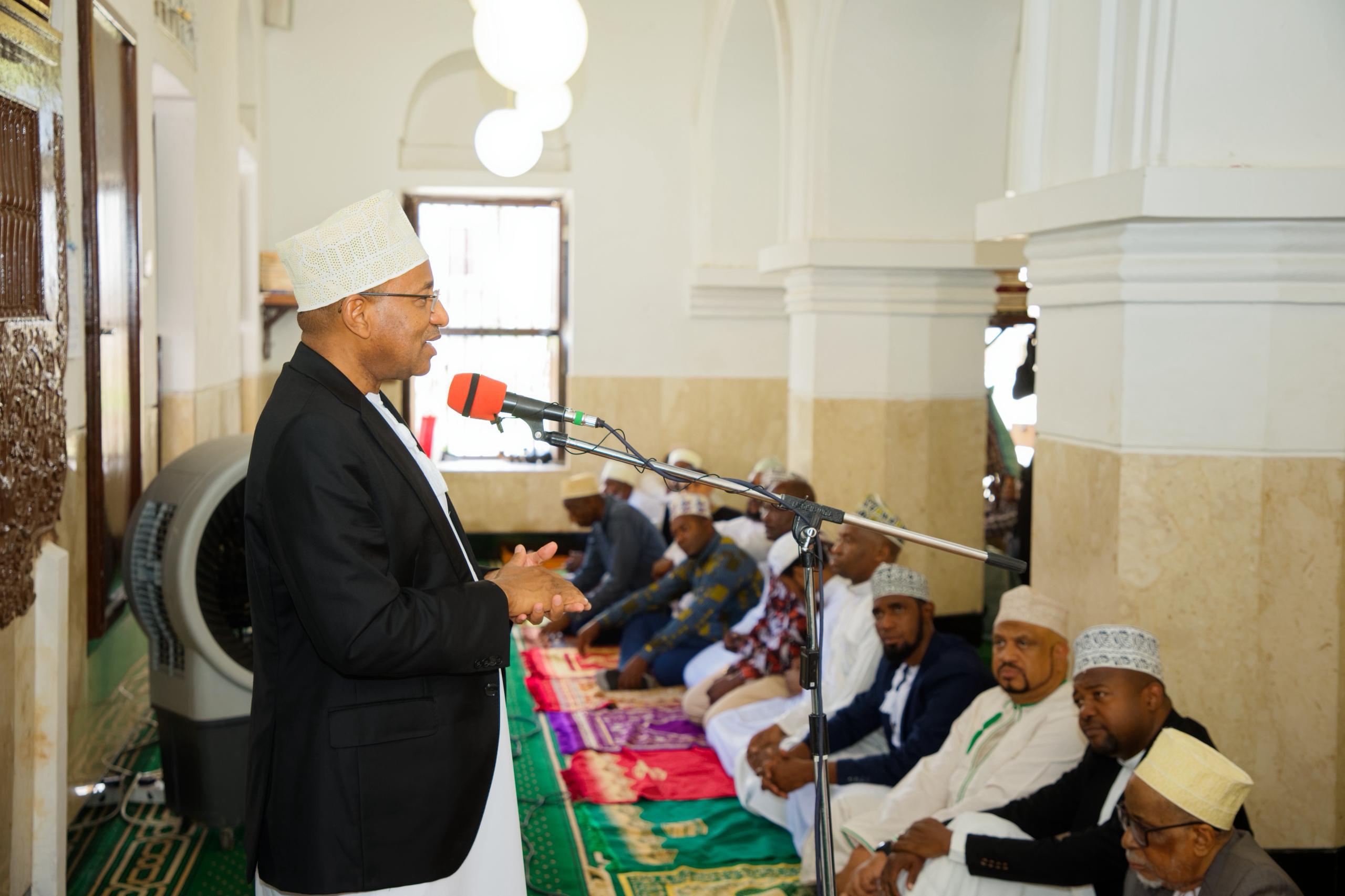 Akizungumza na waumini wa dini ya Kiislamu katika Sala ya Ijumaa katika Msikiti wa Ijumaa, Malindi, Mkoa wa Mjini Magharibi leo tarehe 7 Novemba 2025.