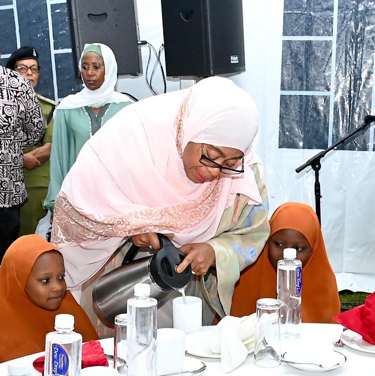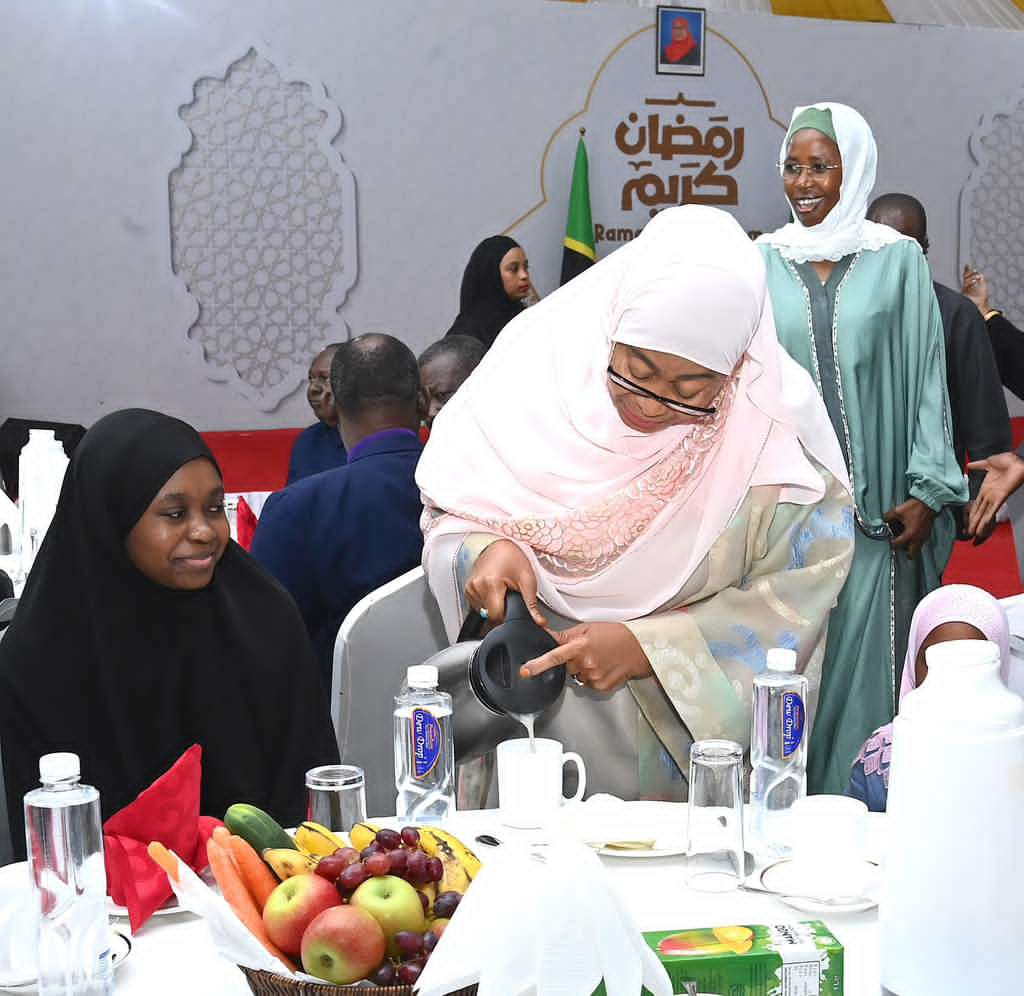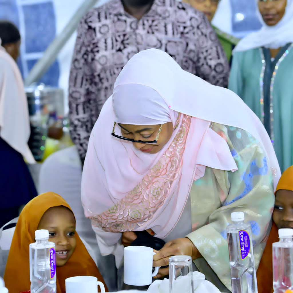 Rais wa Jamhuri ya Muungano wa Tanzania, Mheshimiwa Dkt. Samia Suluhu Hassan akiwamiminia uji wanafunzi wa Assalaf Islamic Seminary kutoka Ummu Aisha Orphanage Centre, walioshiriki kwenye Futari aliyowaandalia pamoja na Makundi mengine ya jamii, Ikulu Ndogo ya Arusha tarehe 01 Machi, 2026.Rais wa Jamhuri ya Muungano wa Tanzania, Mheshimiwa Dkt. Samia Suluhu Hassan akiwa kwenye Futari aliyowaandalia Viongozi wa Dini, Viongozi wa Mkoa wa Arusha, Watoto yatima, Wajane, Wazee pamoja na Makundi mengine ya jamii katika Ikulu Ndogo ya Arusha, tarehe 01 Machi, 2026.