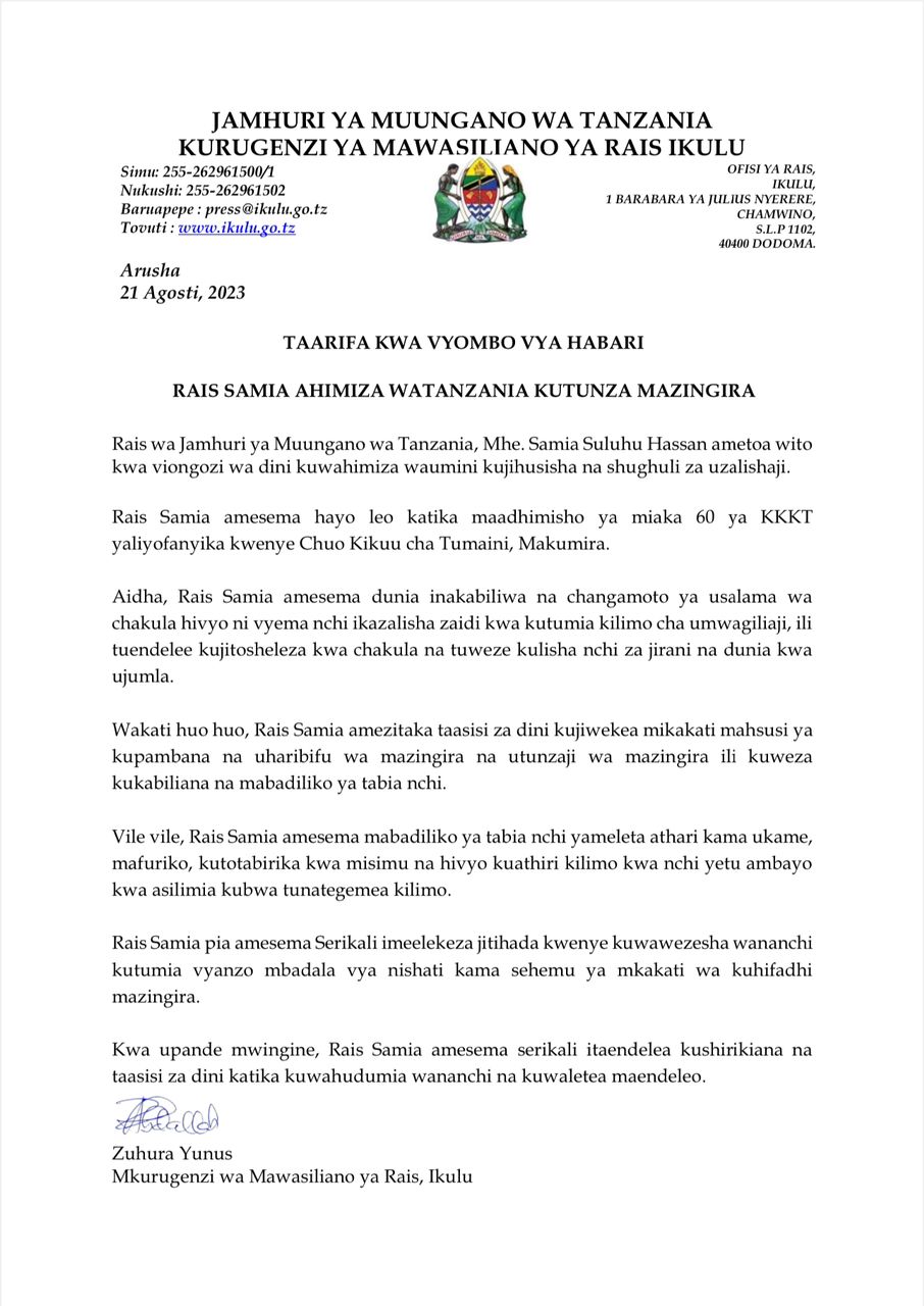 on Rais Samia ahimiza Watanzania kutunza mazingira