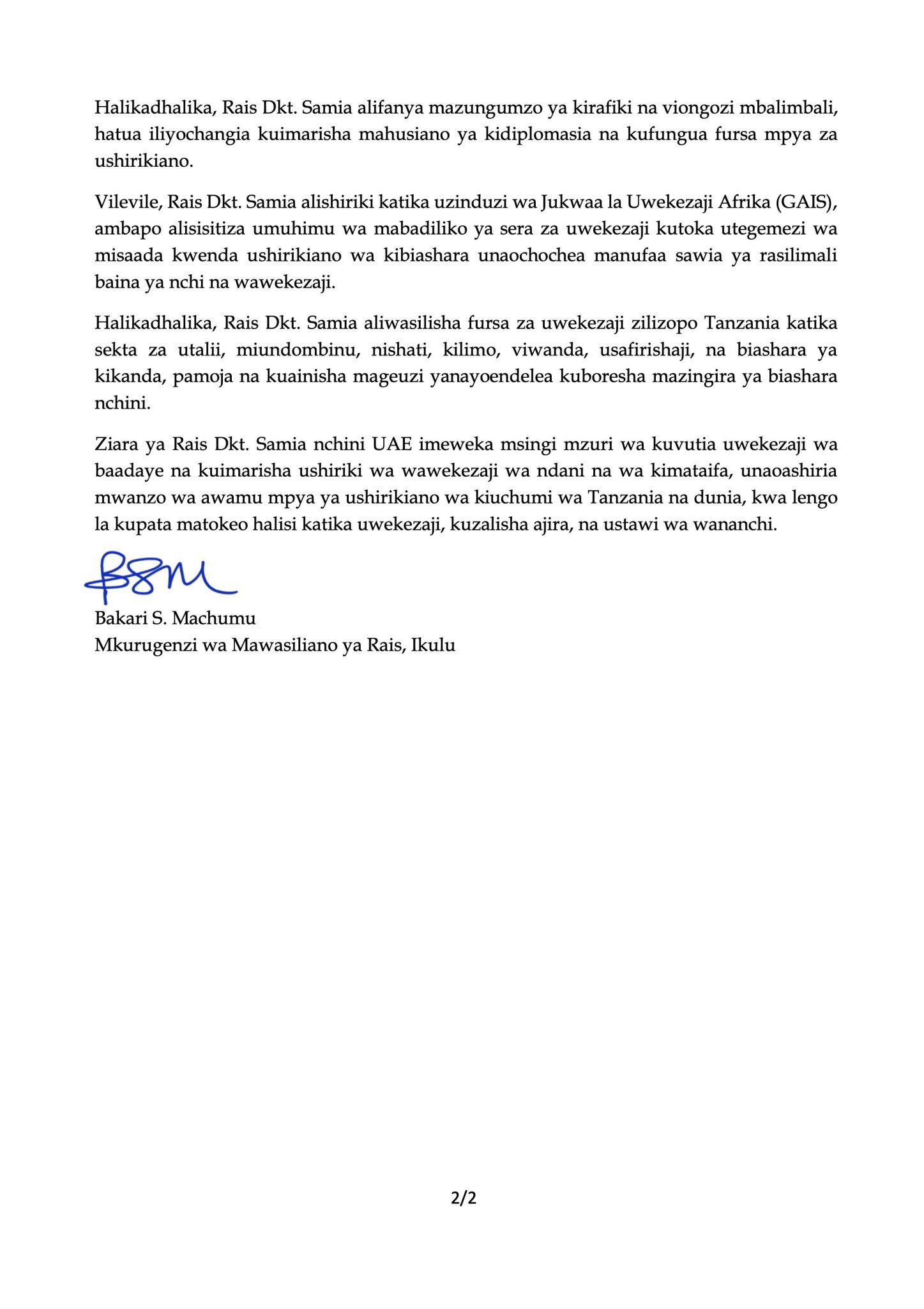 on Rais Samia ahitimisha ziara ya kikazi UAE, aimarisha mahusiano na uwekezaji