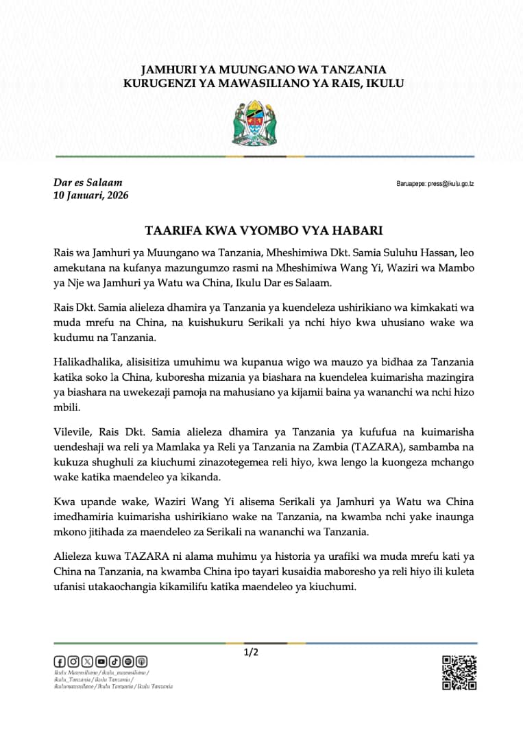 on Rais Samia aishukuru China kwa ushirikiano na uhusiano wake wa kudumu na Tanzania
