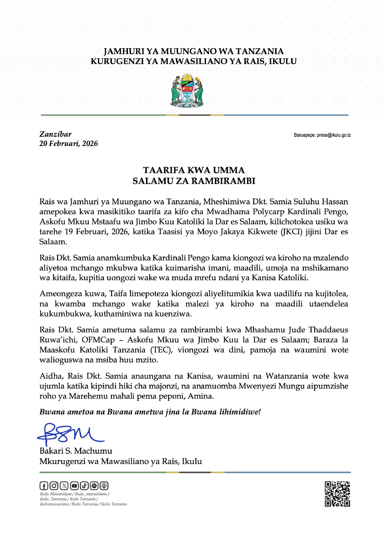Rais Samia amlilia askofu Pengo, mchango wake katika malezi ya kiroho utaenziwa