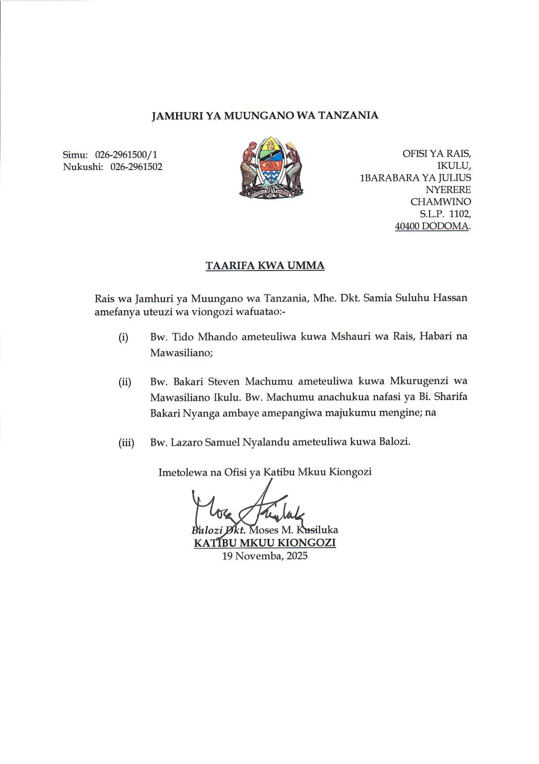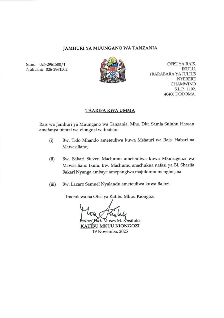 Rais Samia amteua Bakari Machumu kuwa Mkurugenzi wa Mawasiliano Ikulu