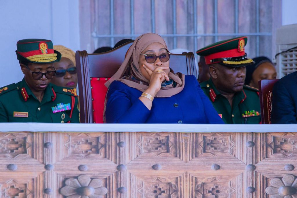 Rais wa Jamhuri ya Muungano wa Tanzania, Mhe. Dkt. Samia Suluhu Hassan akiwa pamoja na viongozi mbalimbali wakati wa kilele cha Tamasha la Kizimkazi katika uwanja wa Mwehe, Kusini Unguja, Zanzibar tarehe 25 Agosti, 2024.