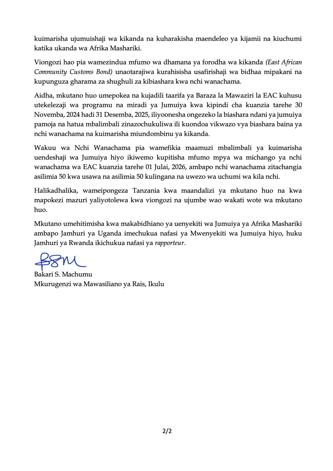 Ruto aaga uenyekiti EAC, apongeza mafanikio ya ushirikiano wa kikanda