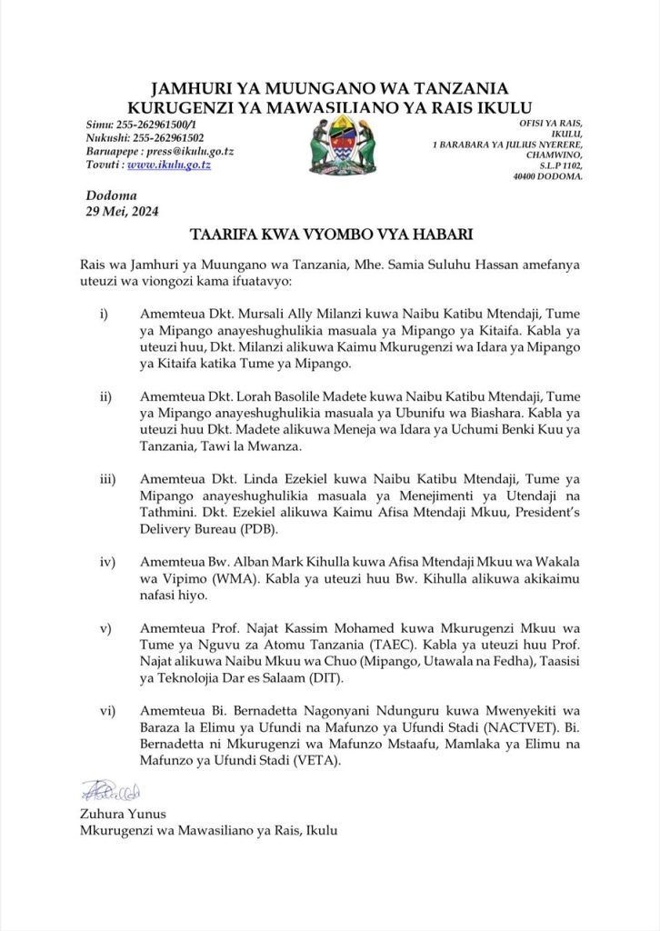 on Rais Samia ateua viongozi hawa