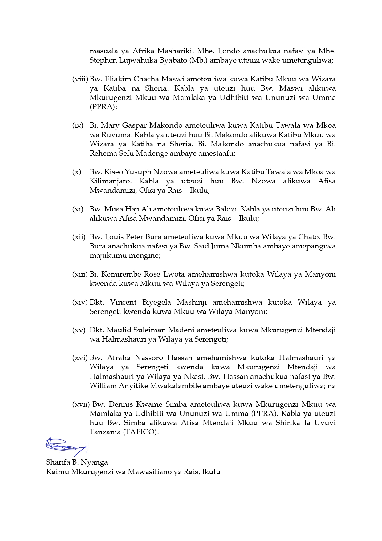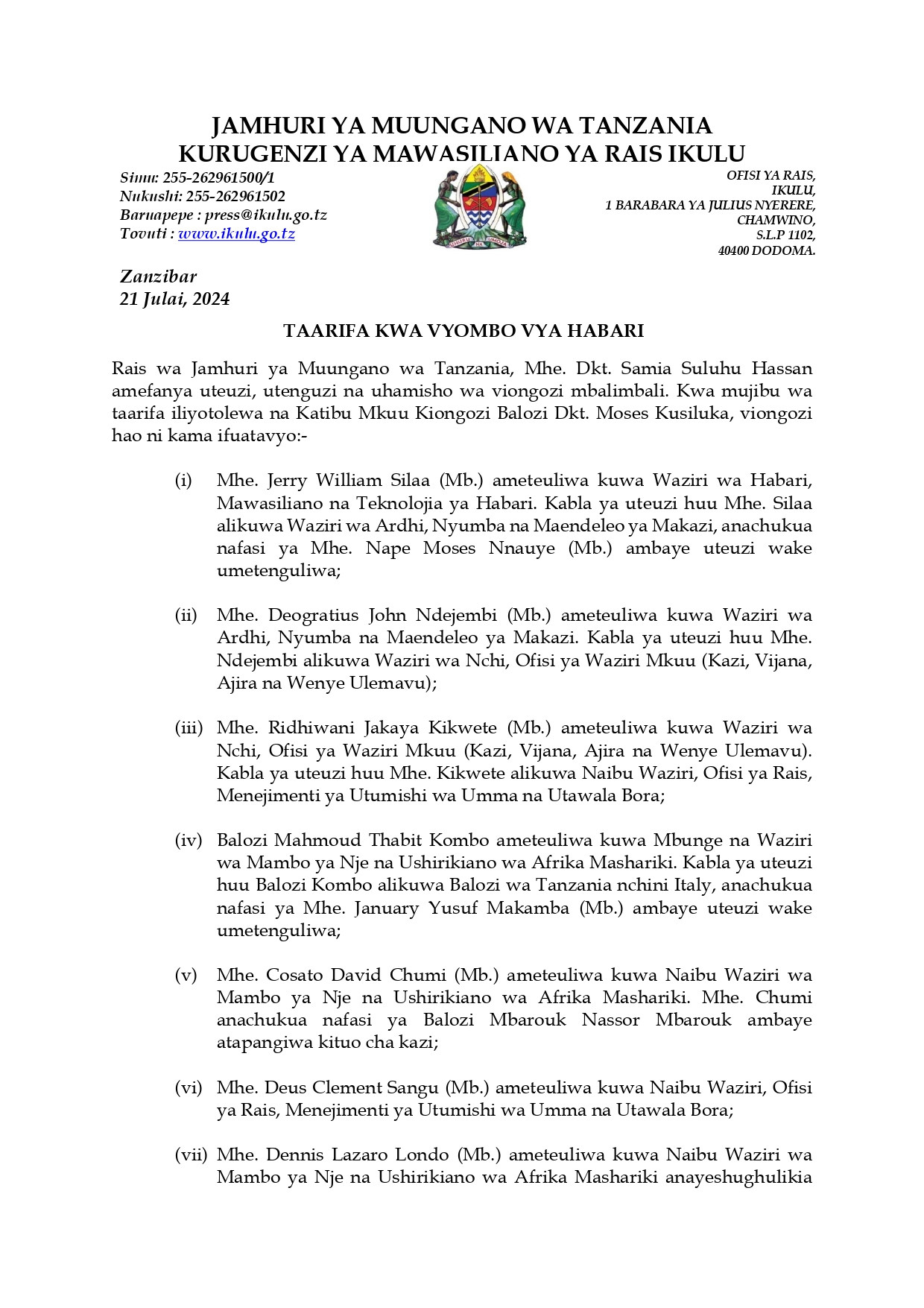 Rais Samia ateua,Nape, Makamba kupangiwa majukumu mengine