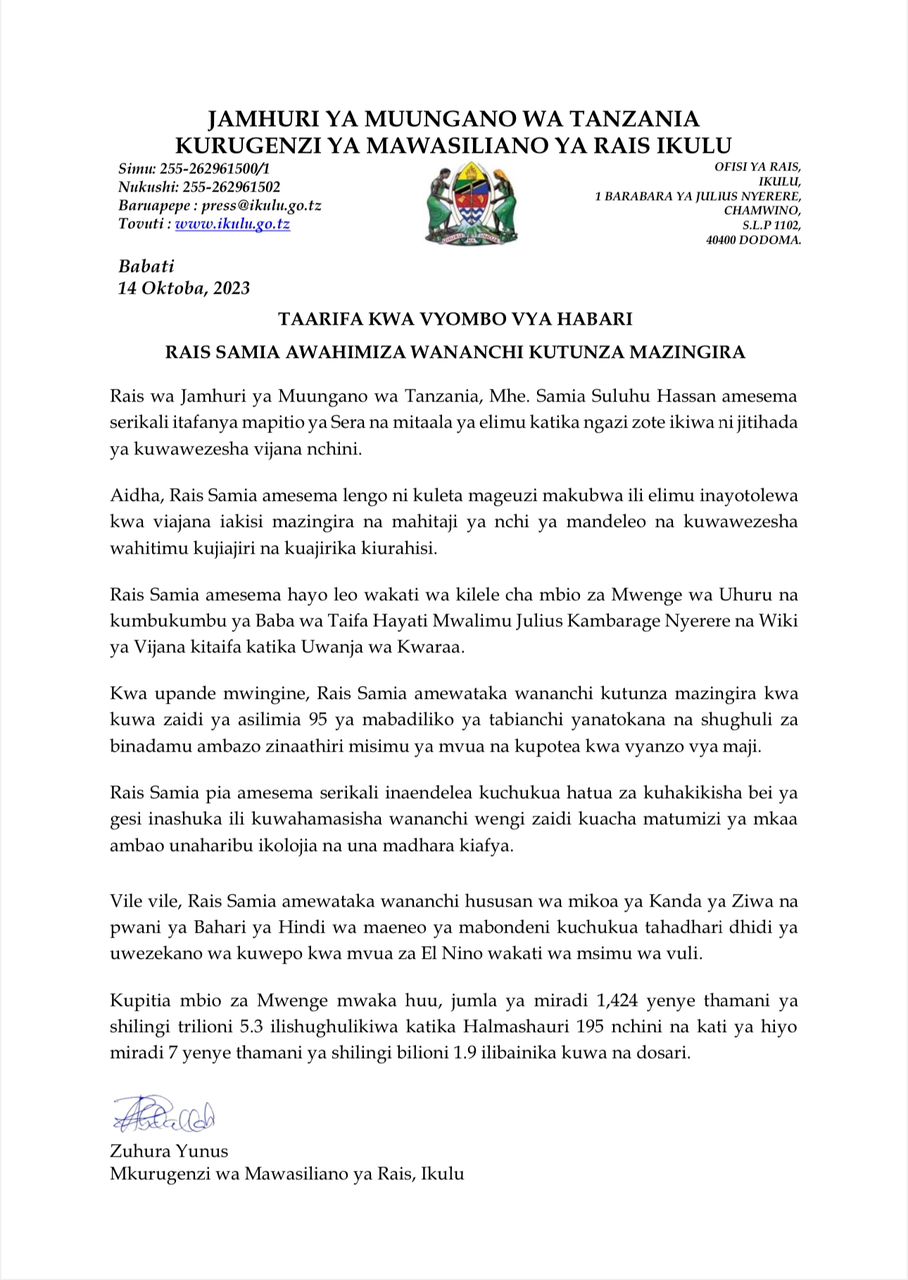 on Rais Samia awahimiza wananchi kutunza mazingira