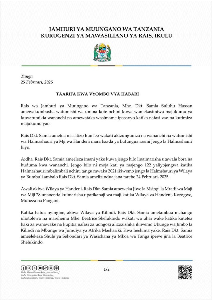 on Rais Samia awakumbusha watumishi wa umma kusimamia majukumu yao kikamilifu