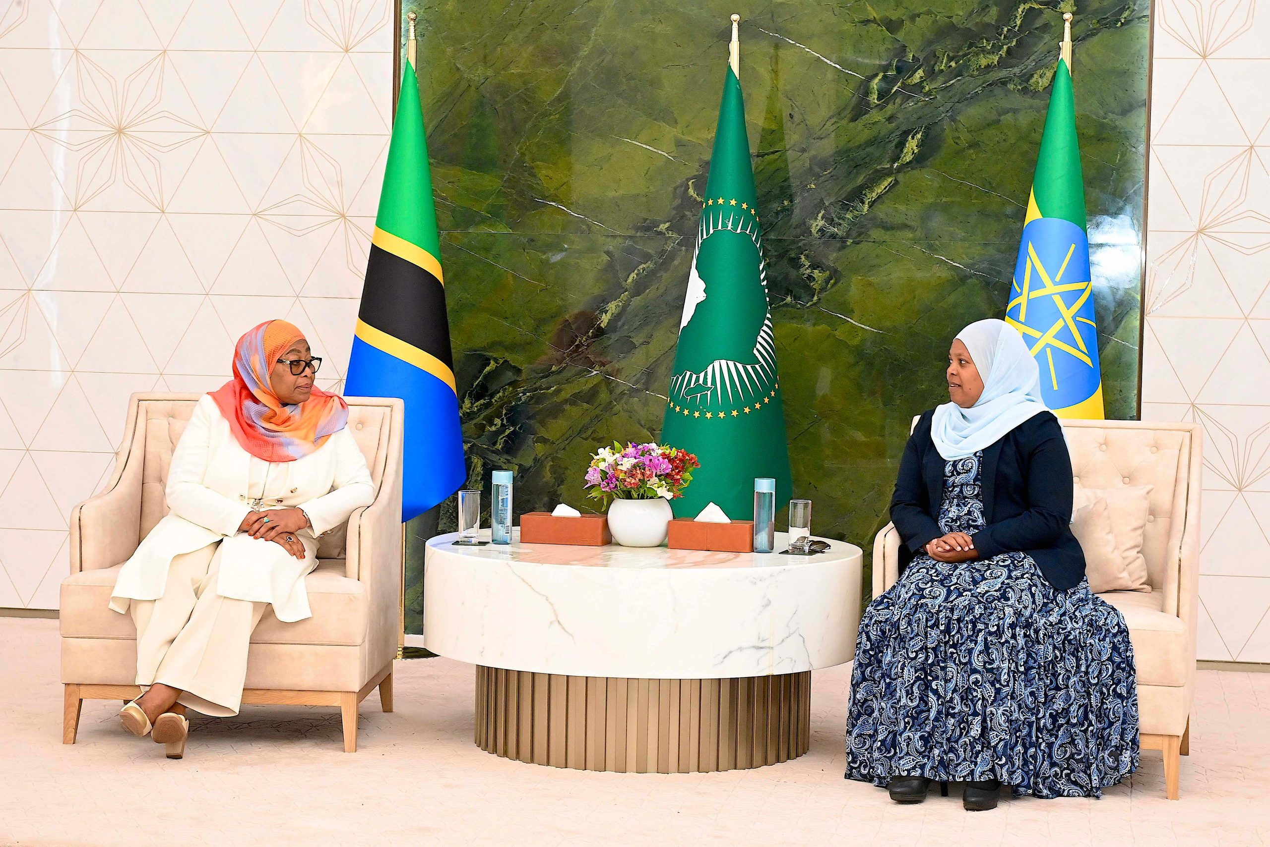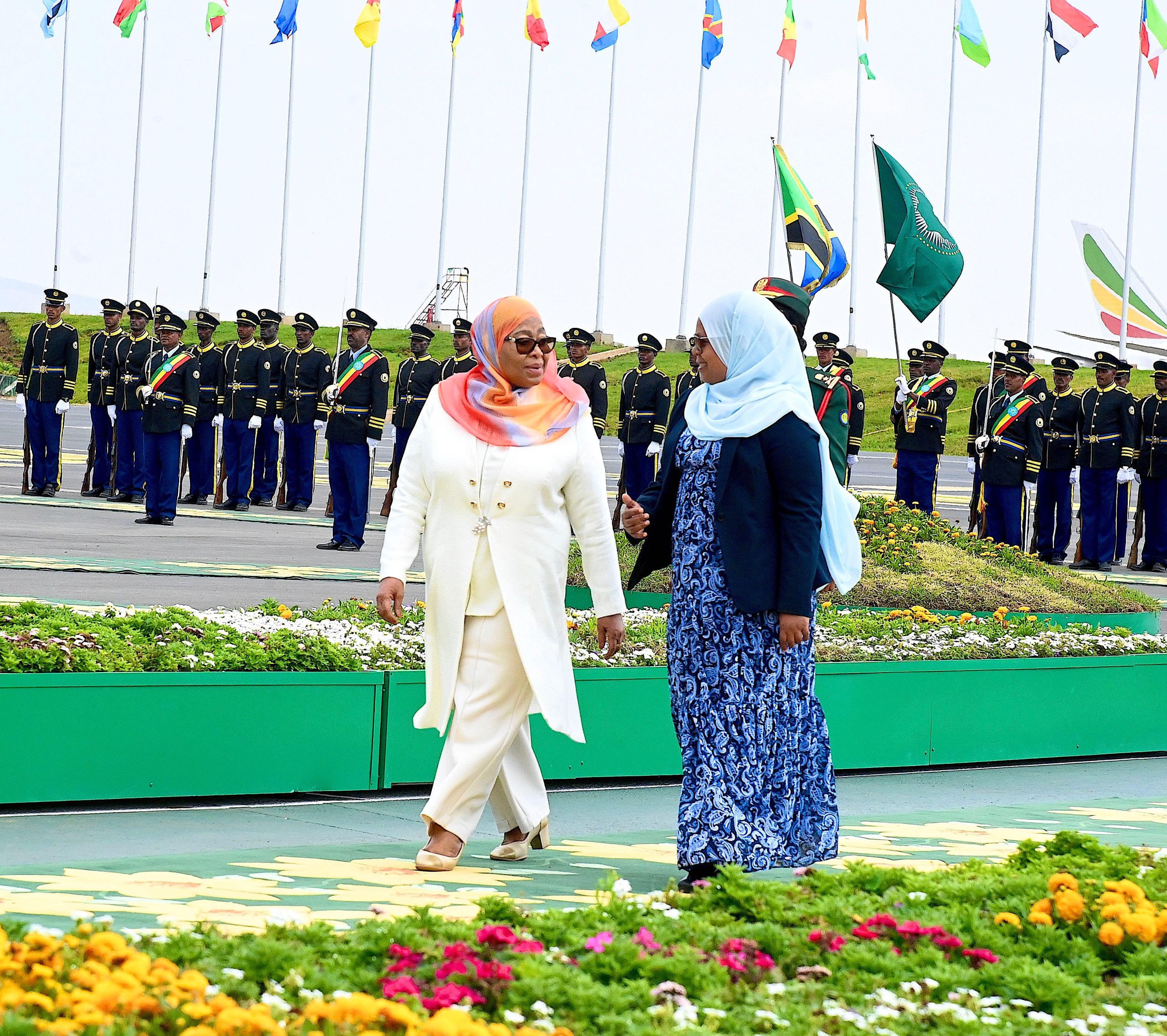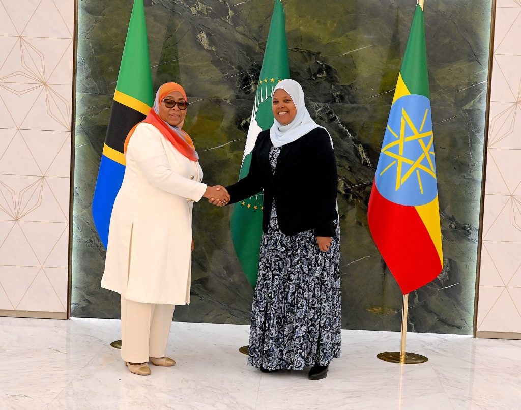 Rais Dkt. Samia Suluhu Hassan alipokelewa na Waziri wa Kazi na Ukuzaji wa Ujuzi wa Ethiopia Mheshimiwa Muferihat Kamil Ahmed