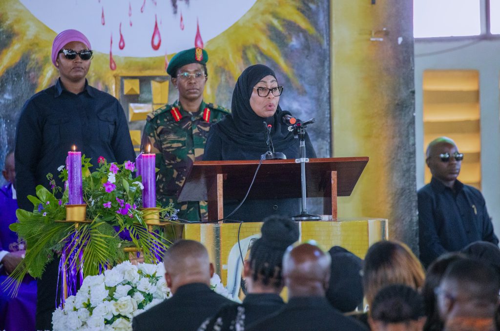 Rais wa Jamhuri ya Muungano wa Tanzania, Mhe. Dkt. Samia Suluhu Hassan leo ameongoza familia, viongozi, wabunge na waombolezaji katika ibada ya kuaga mwili wa aliyekuwa Mbunge wa Jimbo la Peramiho, Mhe. Jenista Joakim Mhagama, iliyofanyika katika Kanisa la Mwenyeheri Maria-Theresa Ledochowska, Parokia ya Kiwanja cha Ndege, Jimbo Kuu Katoliki Dodoma.