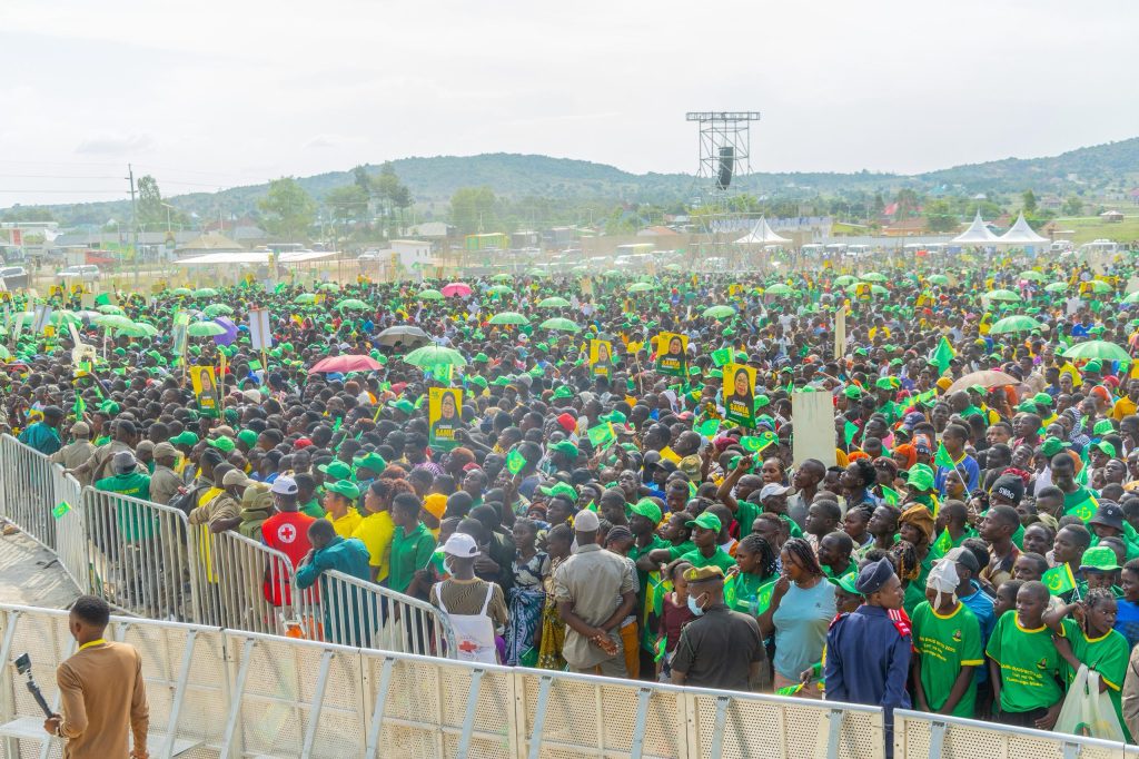 Akihutubia maelfu ya wananchi wa mji wa Geita wakati wa mkutano wa kampeni za uchaguzi mkuu wa Rais,wabunge na madiwani kwenye uwanja wa Bombambili Oktoba 13, 2025.
