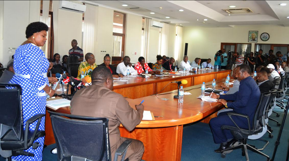 Waziri wa Nchi Ofisi ya Waziri Mkuu (Sera, Bunge, Ajira,Vijana na watu wenye ulemavu) Mhe. Jenista Mhagama akisitiza umuhimu wa ushirikiano kati ya serikali na Shirikisho la Vyama vya Wafanyakazi Nchini (TUCTA) wakati alipokutana na shirikisho hilo leo tarehe 7 Januari 2018, jijini Dar es salaam.