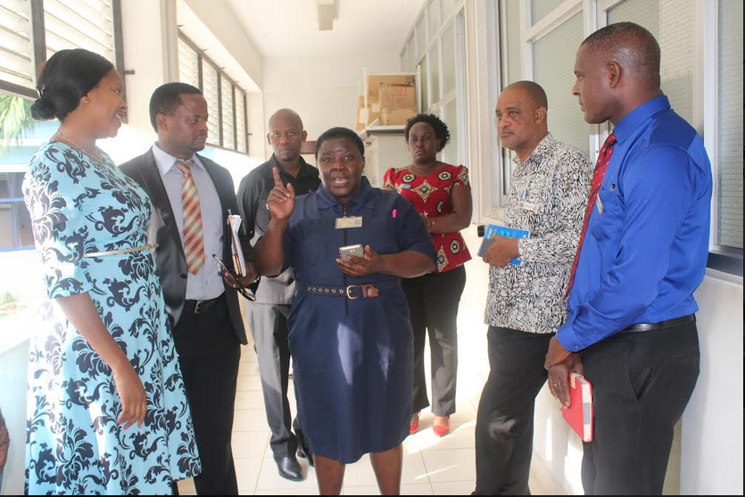 Viongozi wa Taasisi ya Moyo Jakaya Kikwete (JKCI) wakiongozwa na Mkurugenzi wa Idara ya Uuguzi wa Hospitali ya Taifa Muhimbili (MNH) ) Agnes Mtawa kuangalia wodi zilizopo ndani ya jengo la wodi ya watoto ambazo Hospitali hiyo imezitoa kwa Taasisi hiyo ili waweze kuzitumia kutokana na uhaba wa wodi ya watoto walionao.