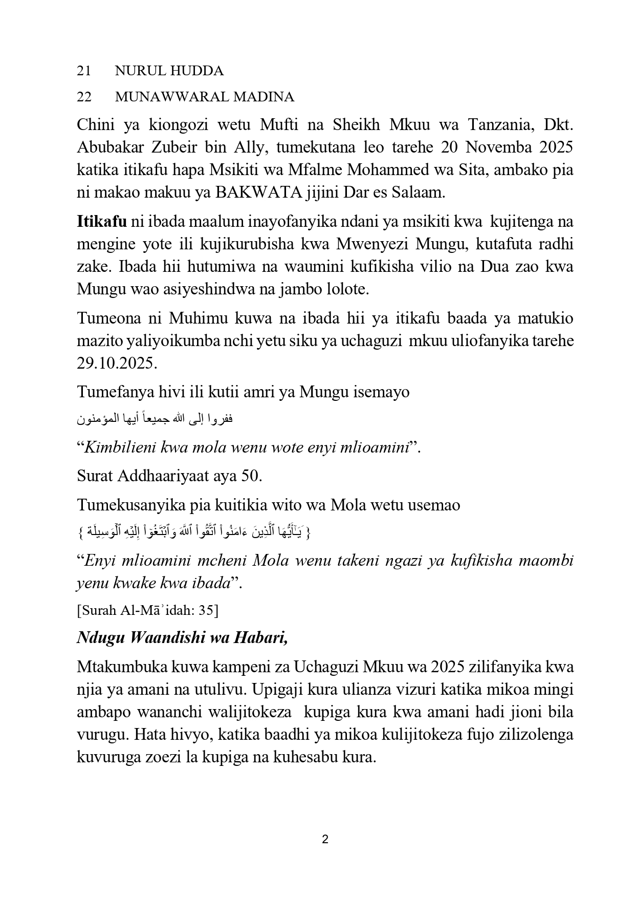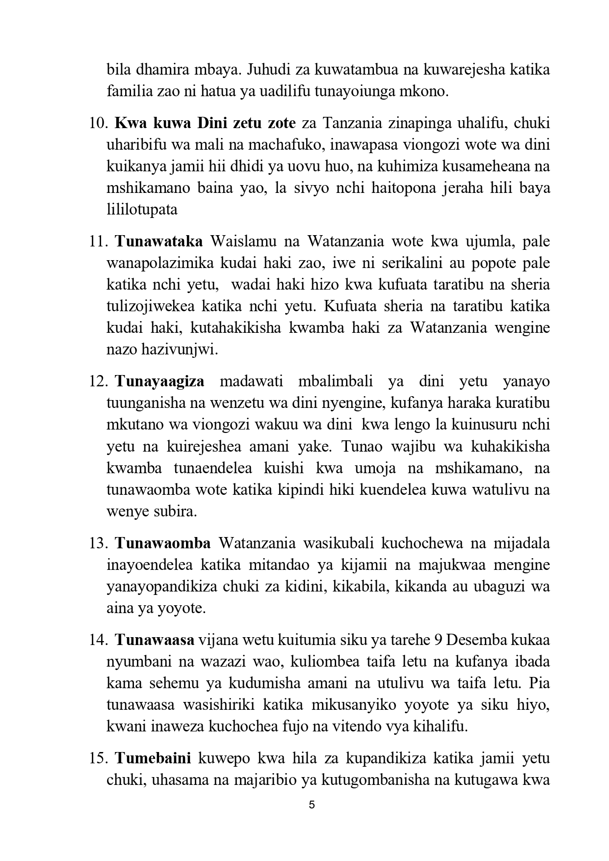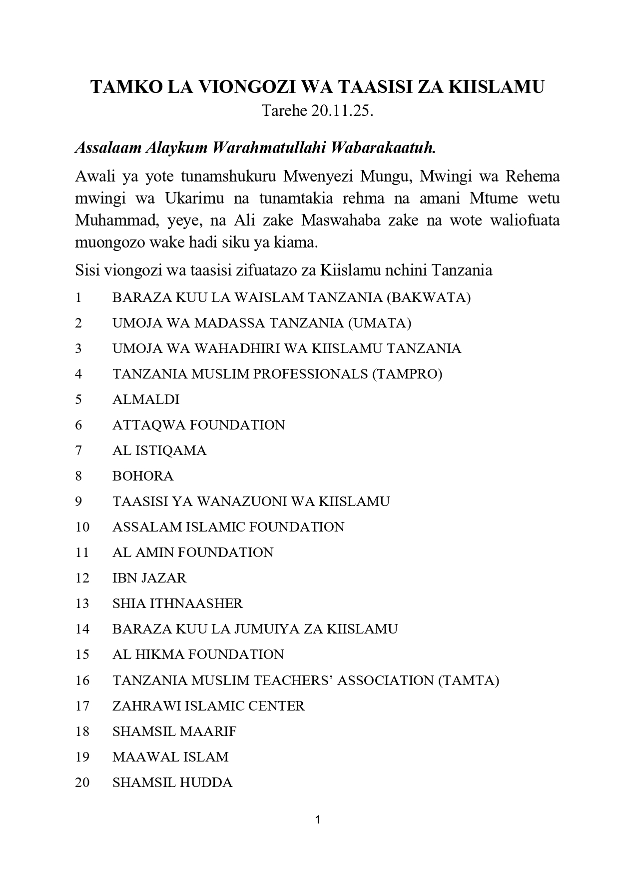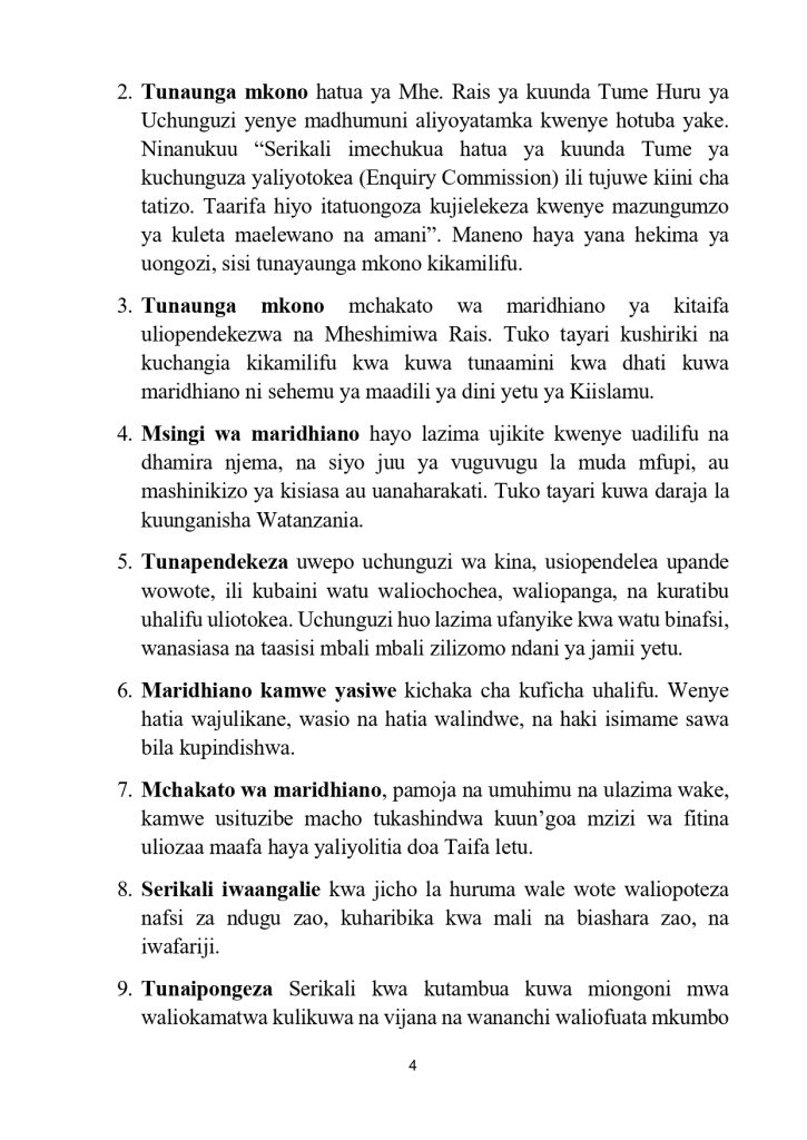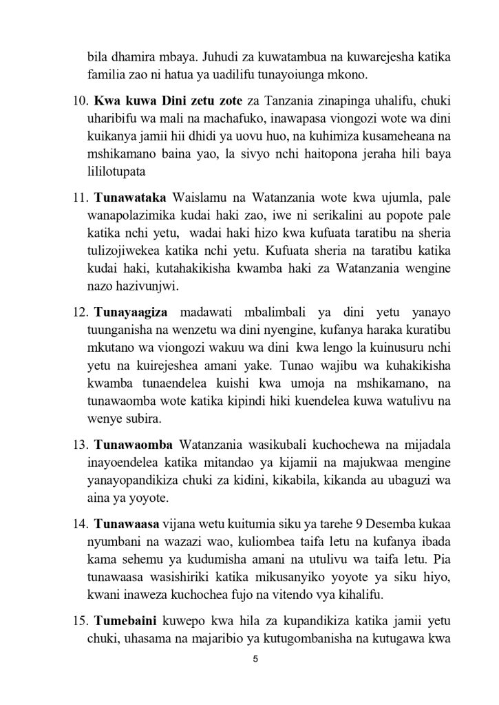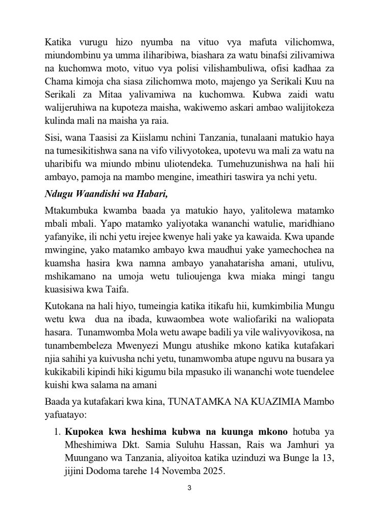 on Taasisi za kiislamu watoa maazimio 17, wataka kutoruhusu amani ya nchi ichezewe