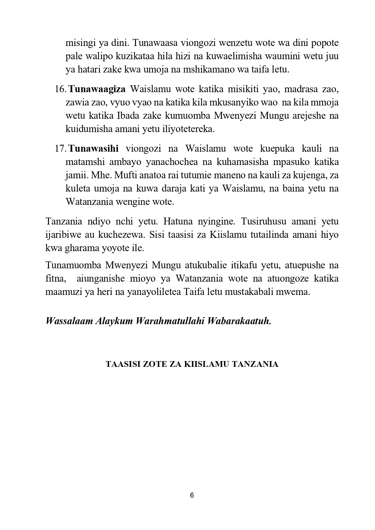 Taasisi za kiislamu watoa maazimio 17, wataka kutoruhusu amani ya nchi ichezewe