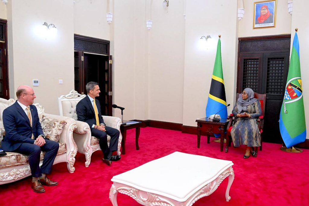 Mheshimiwa Dkt. Samia Suluhu Hassan, Rais wa Jamhuri ya Muungano wa Tanzania, leo amefanya mazungumzo na Kaimu Balozi wa Marekani nchini Tanzania, Andrew Lentz, katika Ikulu ya Chamwino, kujadili maeneo muhimu ya ushirikiano na kuimarisha dhamira ya pamoja ya kujenga ushirikiano wa kisasa na wenye manufaa kwa pande zote mbili.