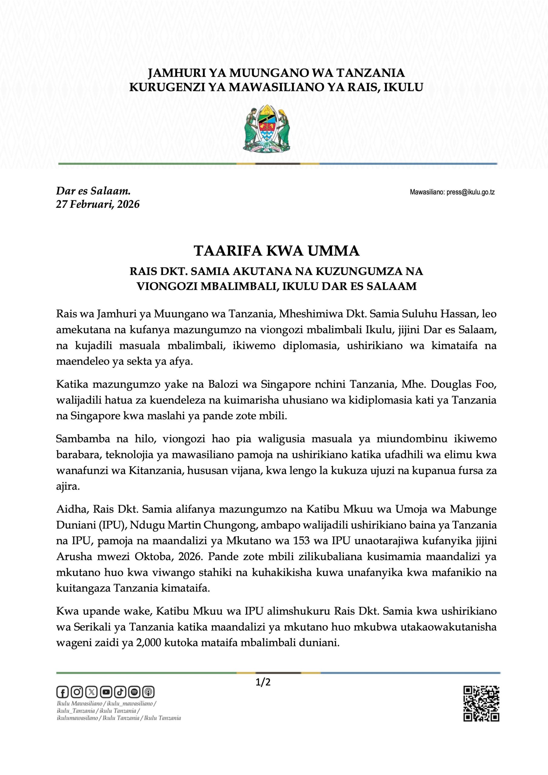 on Tanzania, Singapore kuimarisha uhusiano wa kidiplomasia