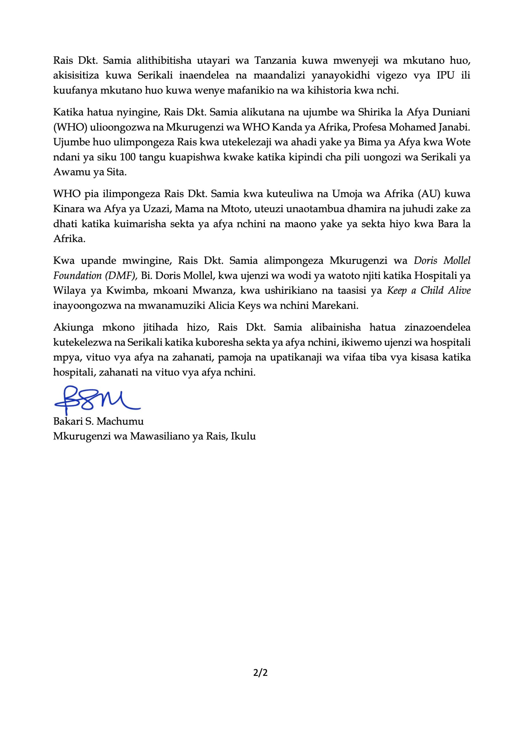 Rais Samia azungumza na mkuu wa WHO Kanda ya Afrika Prof. Janabi