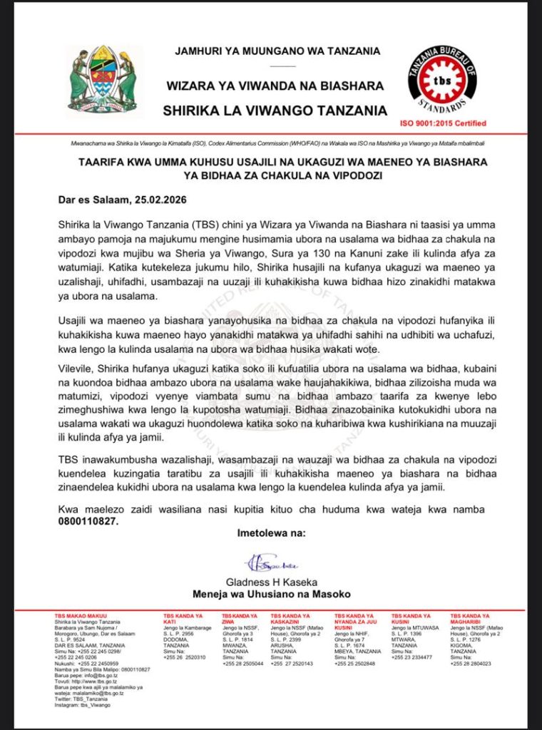 TBS yawakumbusha wazalishaji, wauzaji, wasambazaji kuzingatia usajili wa bidhaa