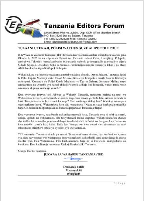 on TEF yalaani utekaji, Polisi wachunguze alipo Polepole