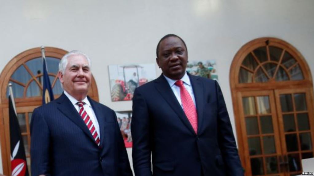 Tillerson alipongeza hatua ya rais wa Kenya, Uhuru Kenyatta na kiongozi wa upinzani Raila Odinga ya kukutana na kufanya mazungumzo, miezi kadhaa baada ya uchaguzi wa urais kusababisha machafuko wakati upinzani ukidai kulikuwapo udanganyifu katika uchaguzi huo.