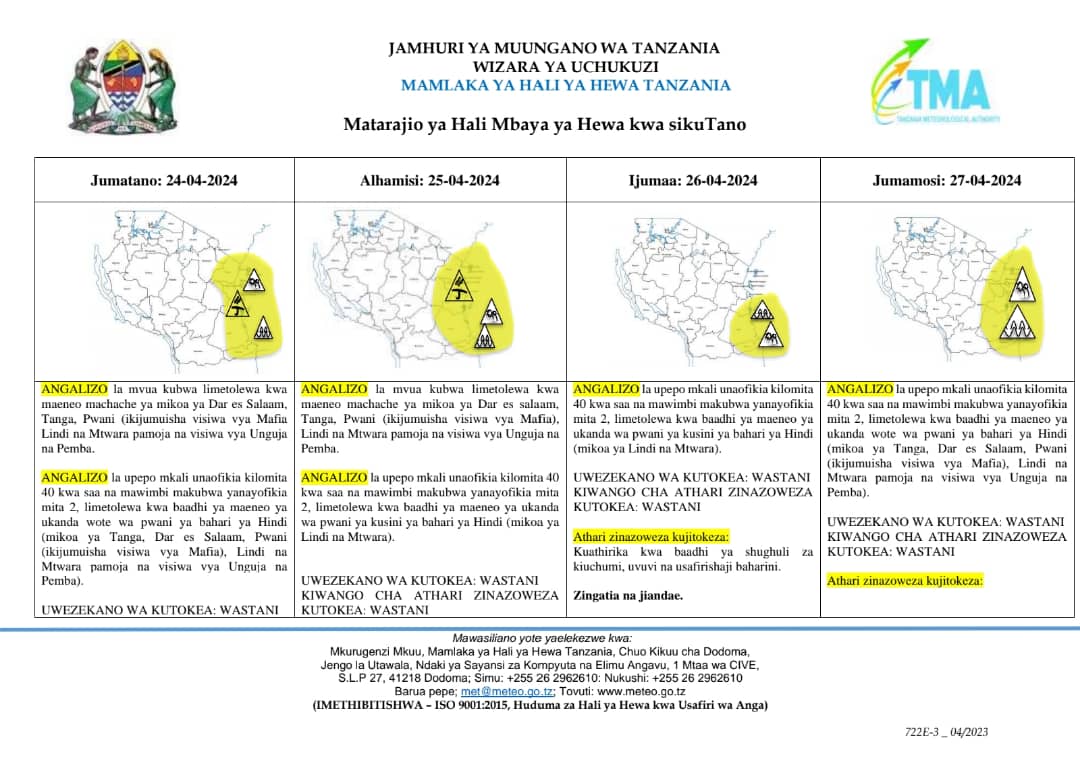 on TMA yatoa angalizo la hali mbaya ya hewa kwa siku tano, mikoa nane kuathiriwa