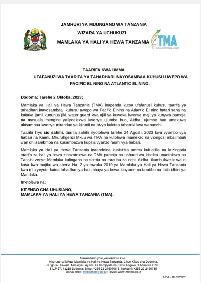 on TMA yatoa ufafanuzi uwepo wa Pacific El Nino na Atlantic El Nino
