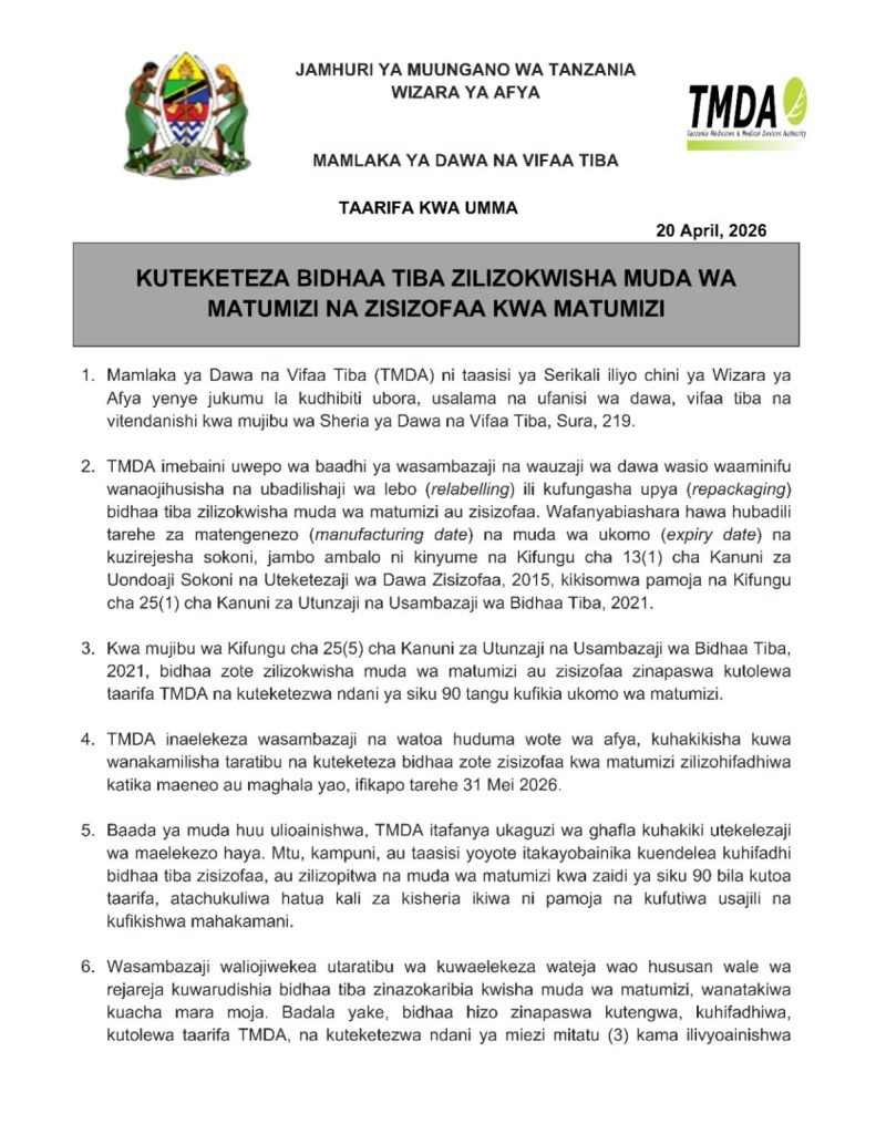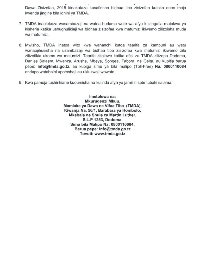 TMDA kuteketeza bidhaa tiba zilizokwisha muda wa matumizi na zisizpfaa kwa matumizi