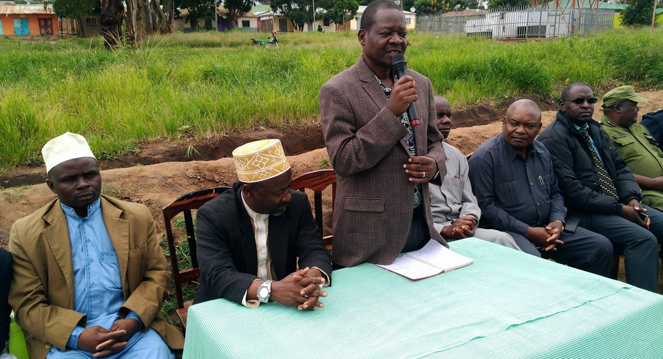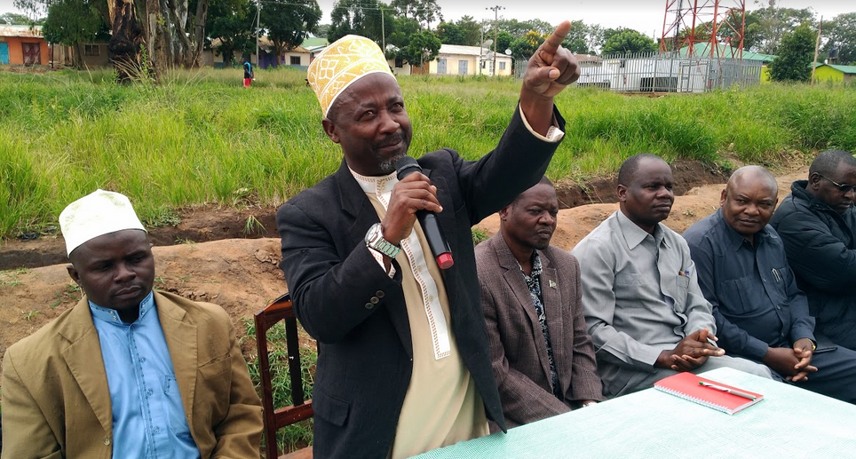Mkuu wa Mkoa wa Rukwa Mh. Joachim Wangabo akitoa salamu za Rais. Dk. John Pombe Magufuli juu ya waislamu kukubaliwa kuendelea na ujenzi wa Msikiti.