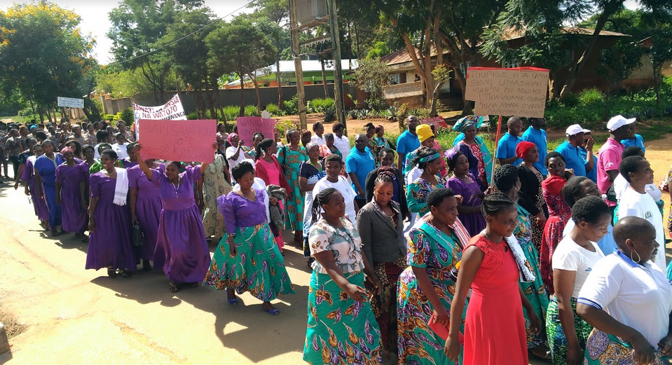 wanawake waliohudhuria maandamano kuelekea uwanja wa Nelson Mandela Mjini Sumbawanga kuadhimisha siku ya wanawake Duniani