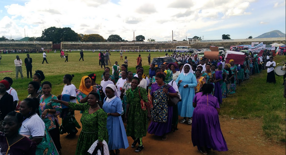 wanawake waliohudhuria maandamano uwanja wa Nelson Mandela Mjini Sumbawanga kuadhimisha siku ya wanawake Duniani