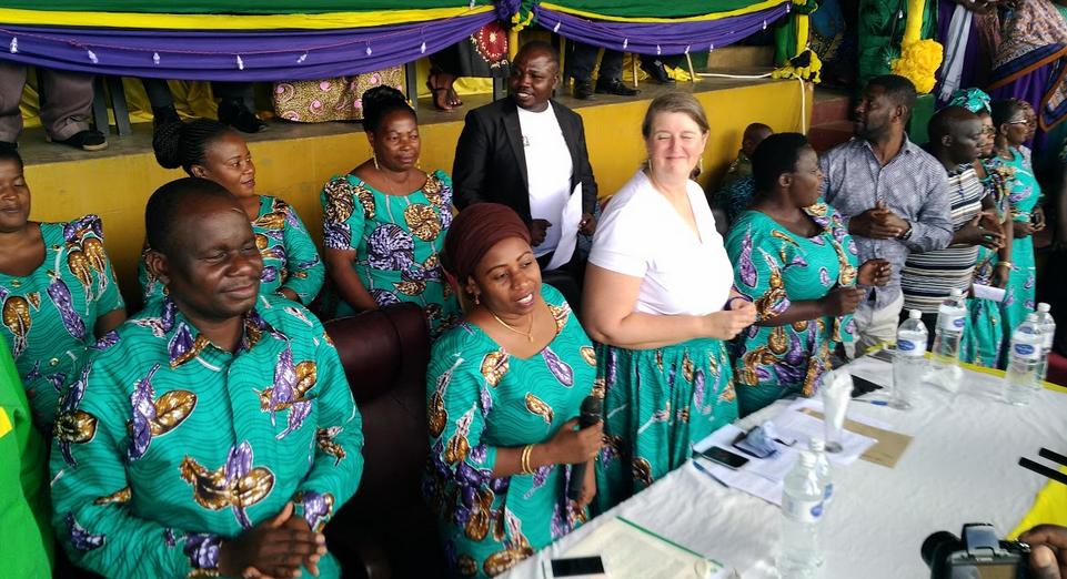 Waziri wa Afya Mh. Ummy Mwalimu (wa pili toka kushoto) akiwana Mwakilishi wa Balozi wa Canada Bi. Susan Steffen (anayemfuatia) na Kaimu Mkuu wa Mkoa wa Rukwa Dk. Khalfan Haule muda mfupi kabla ya Mh. Ummy kutoa hotuba yake.
