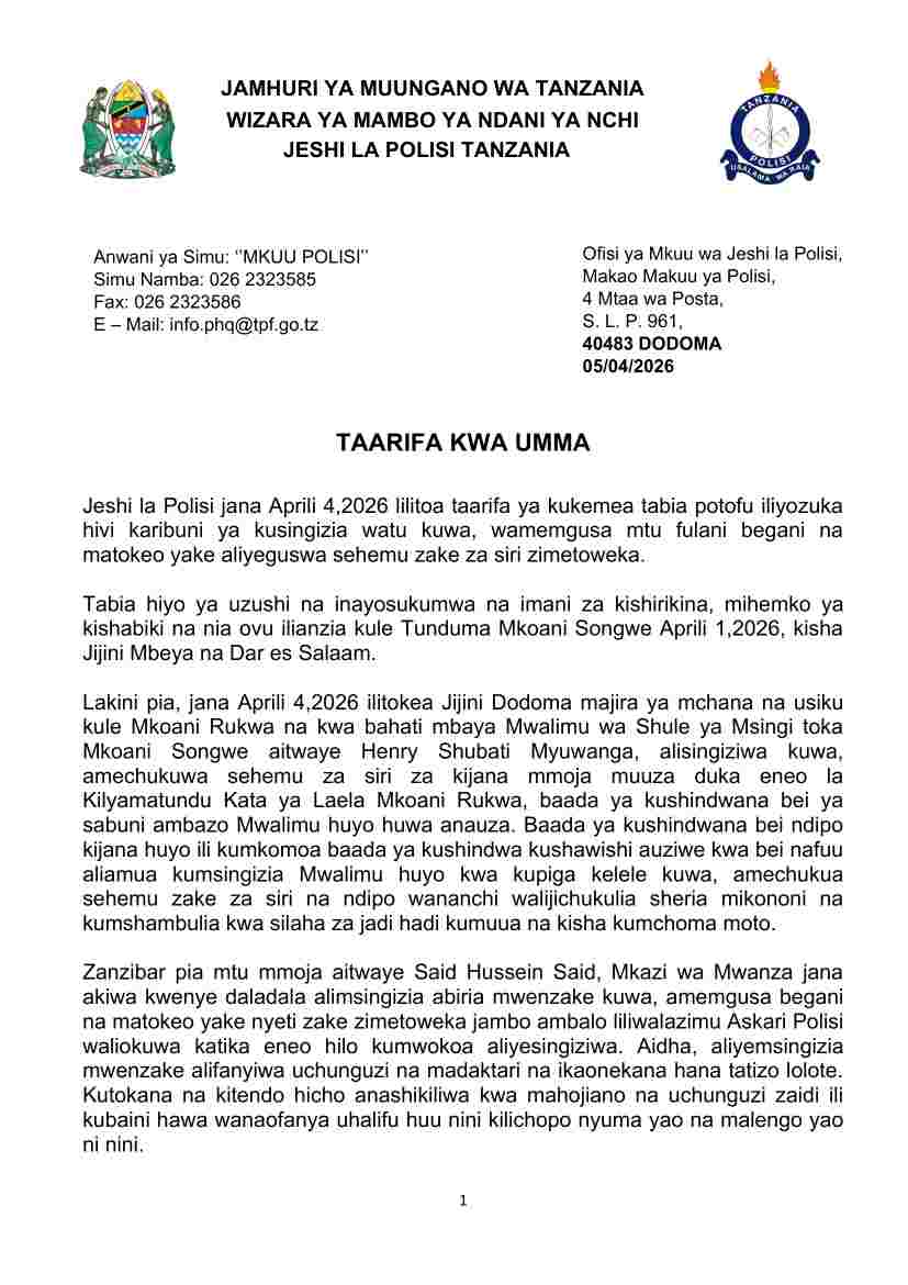 Polisi Ruvuma yawashikilia watatu kwa tuhuma kuua, kukutwa na sare za JWTZ