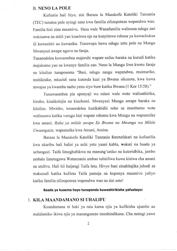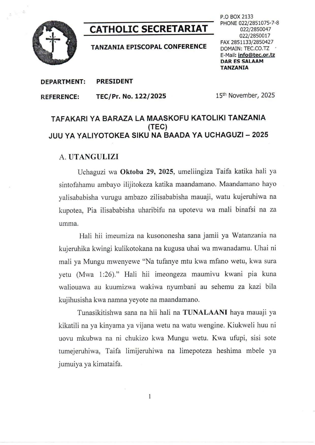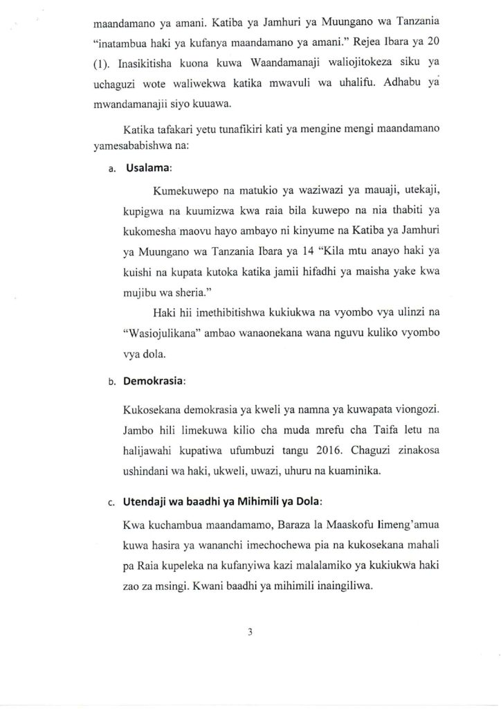 on Waraka wa TEC huu hapa, yashauri uchunguzi huru vurugu za Oktoba 29