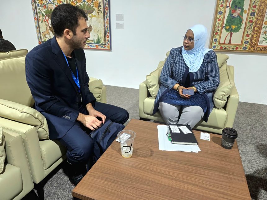 Waziri wa Nchi Ofisi ya Makamu wa Rais (Muungano na Mazingira) Mhe. Dkt. Ashatu Kijaji akifanya mazungumzo na Mkurugenzi Mtendaji wa Kampuni ya Tomorrow Bw. Rei Goffer, katika mkutano uliofanyika pembezoni mwa Mkutano wa 29 wa Nchi Wanachama wa Mkataba wa Umoja wa Mataifa kuhusu Mabadiliko ya Tabianchi (COP-29) unaofanyika katika Mji wa Baku nchini Azerbaijan, Novemba 15, 2024.