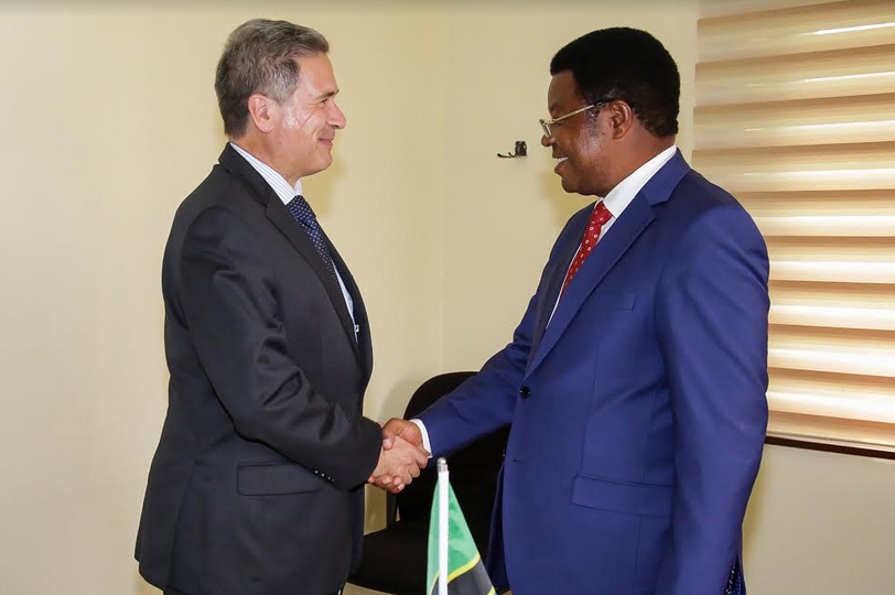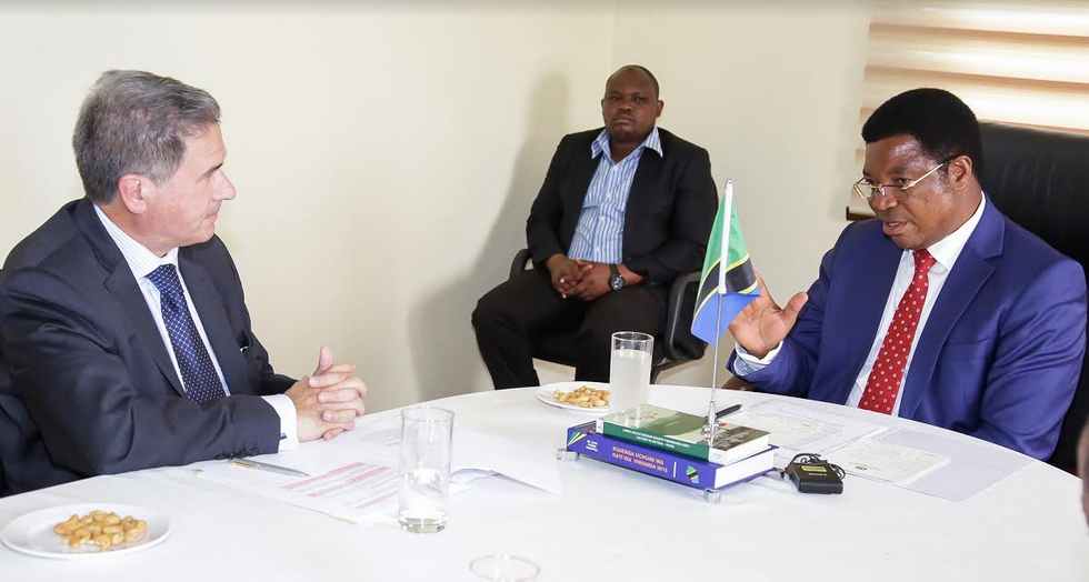 Waziri Mkuu, Kassim Majaliwa akisalimiana na Balozi wa Ufaransa nchini Tanzania, Frederic Clavier, kwenye makazi ya Waziri Mkuu, Oysterbay jijini Dar es salaam, Machi 5, 2018,