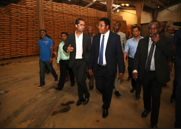 Waziri Mkuu Kassimu Majaliwa katikati amekagua shughuli ya usafirishaji wa Mbolea kwenda mikoani kutoka katika ghala la Mohamed Interprises lilipo Mbagala.kushoto kwa Waziri Mkuu ni Waziri wa Kilimo Dkt. Charles Tizeba Na kulia ni Mkurugenzi Mkuu wa Mohamed Interprises. Bwana Mohamed Dewji .Waziri Mkuu amefanya ukaguzi huo leo Mkoani Dar es salaam Januari 10/2017