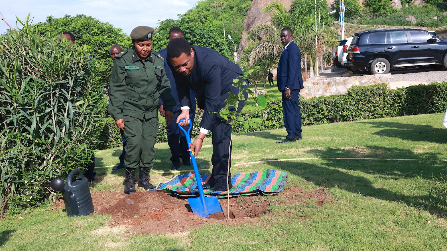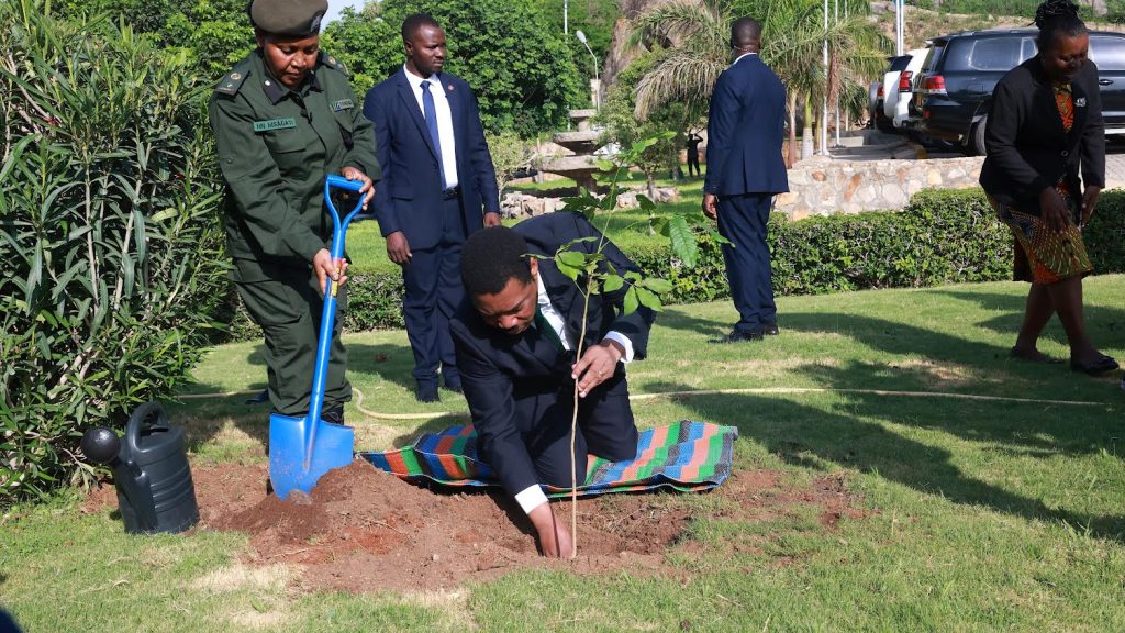 Waziri Mkuu, Dkt. Mwigulu Nchemba akipanda mti mbele ya Ofisi ya Waziri Mkuu Mlimwa jijini Dodoma Januari 27, 2026 ikiwa ni kuunga mkono, uamuzi wa Rais wa Jamhuri ya Muungano wa Tanzania, Dkt. Samia Suluhu Hassan wa kuadhimisha siku ya kuzaliwa kwake kwa kulinda mazingira. Kushoto ni Kaimu Kamanda wa Wakala wa Huduma za Misitu Tanzania (TFS) Kanda ya Kati, PCOI Husna Msagati. (Picha na Ofisi ya Waziri Mkuu)Mke wa Waziri Mkuu, Mama Neema Nchemba akipanda mti mbele ya Ofisi ya Waziri Mkuu Mlimwa jijini Dodoma Januari 27, 2026 ikiwa ni kuunga mkono, uamuzi wa Rais wa Jamhuri ya Muungano wa Tanzania, Dkt. Samia Suluhu Hassan wa kuadhimisha siku ya kuzaliwa kwake kwa kulinda mazingira. (Picha na Ofisi ya Waziri Mkuu)Waziri Mkuu, Dkt. Mwigulu Nchemba akizungumza na watumishi wa Ofisi ya Waziri Mkuu baada ya kupanda mti mbele ya Ofisi ya Waziri Mkuu Mlimwa jijini Dodoma, Januari 27, 2026 ikiwa ni kuunga mkono, uamuzi wa Rais wa Janmhuri ya Muungano wa Tanzania, Dkt. Samia Suluhu Hassan wa kuadhimisha siku ya kuzaliwa kwake kwa kulinda mazingira. Kushoto ni Kaimu Kamanda wa Wakala wa Huduma za Misitu Tanzania (TFS) Kanda ya Kati, PCOI Husna Msagati. (Picha na Ofisi ya Waziri Mkuu)