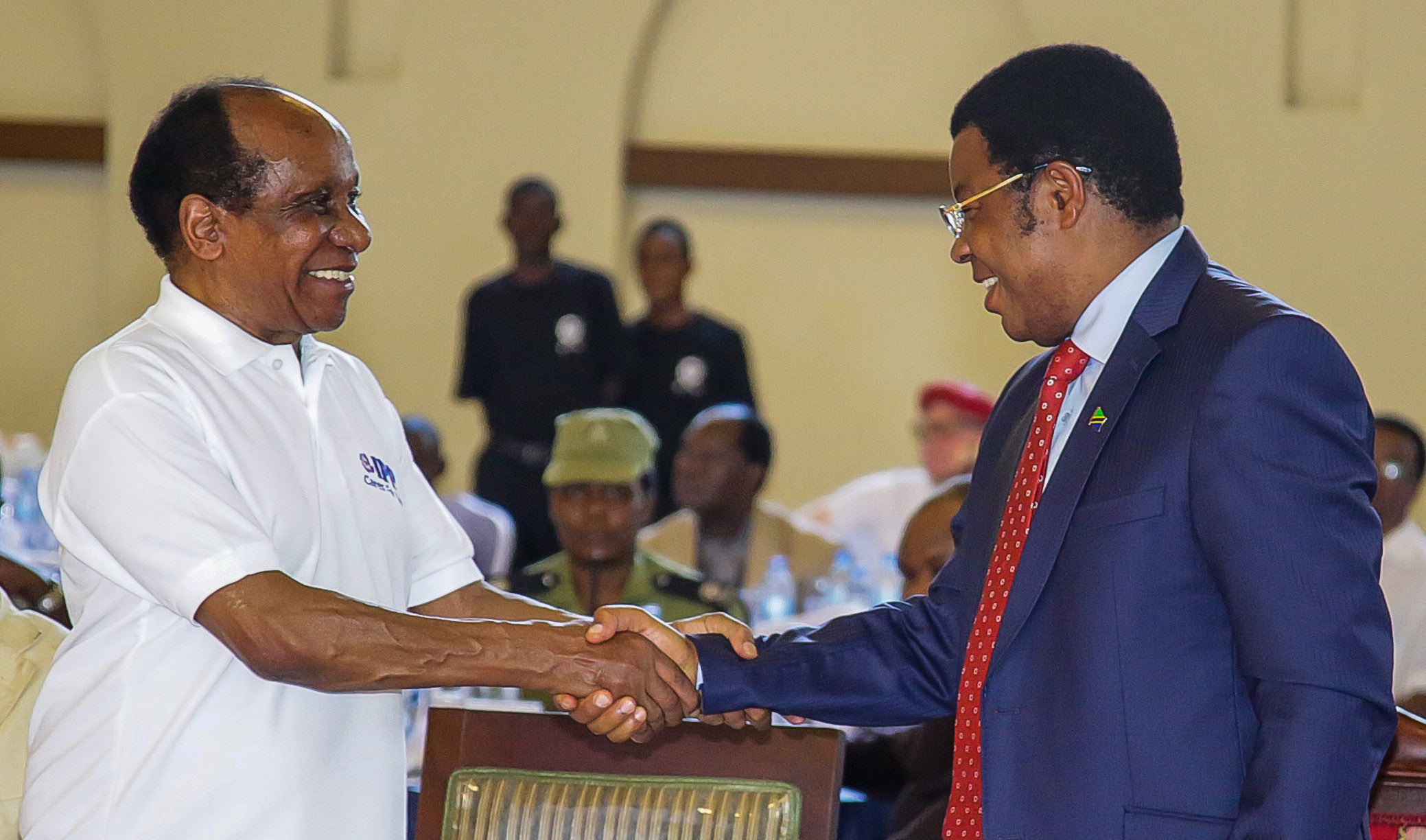 Waziri Mkuu, Kassim Majaliwa akisalimiana na Mwenyekiti wa Makampuni ya IPP, Reginald Mengi, katika hafla ya chakula cha mchana kwa ajili ya watu wenye ulemavu, iliyofanyika kwenye ukumbi wa Diamond Jubilee. Februari 4, 2018.