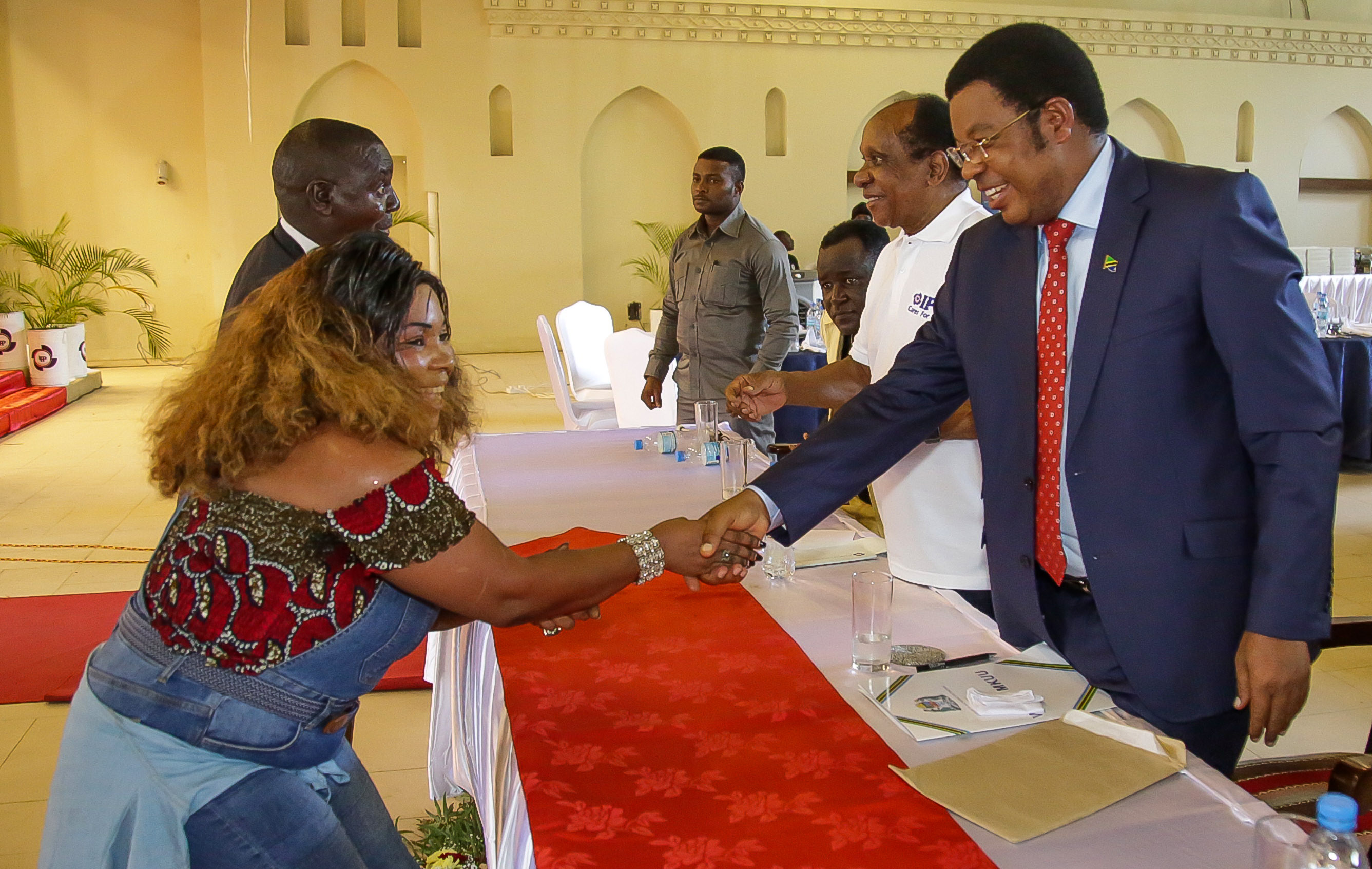 Waziri Mkuu, Kassim Majaliwa akisalimiana na muimbaji wa muziki wa kizazi kipya, Saida Kalori, katika hafla ya chakula cha mchana kwa ajili ya watu wenye ulemavu, iliyofanyika kwenye ukumbi wa Diamond Jubilee. Februari 4, 2018.