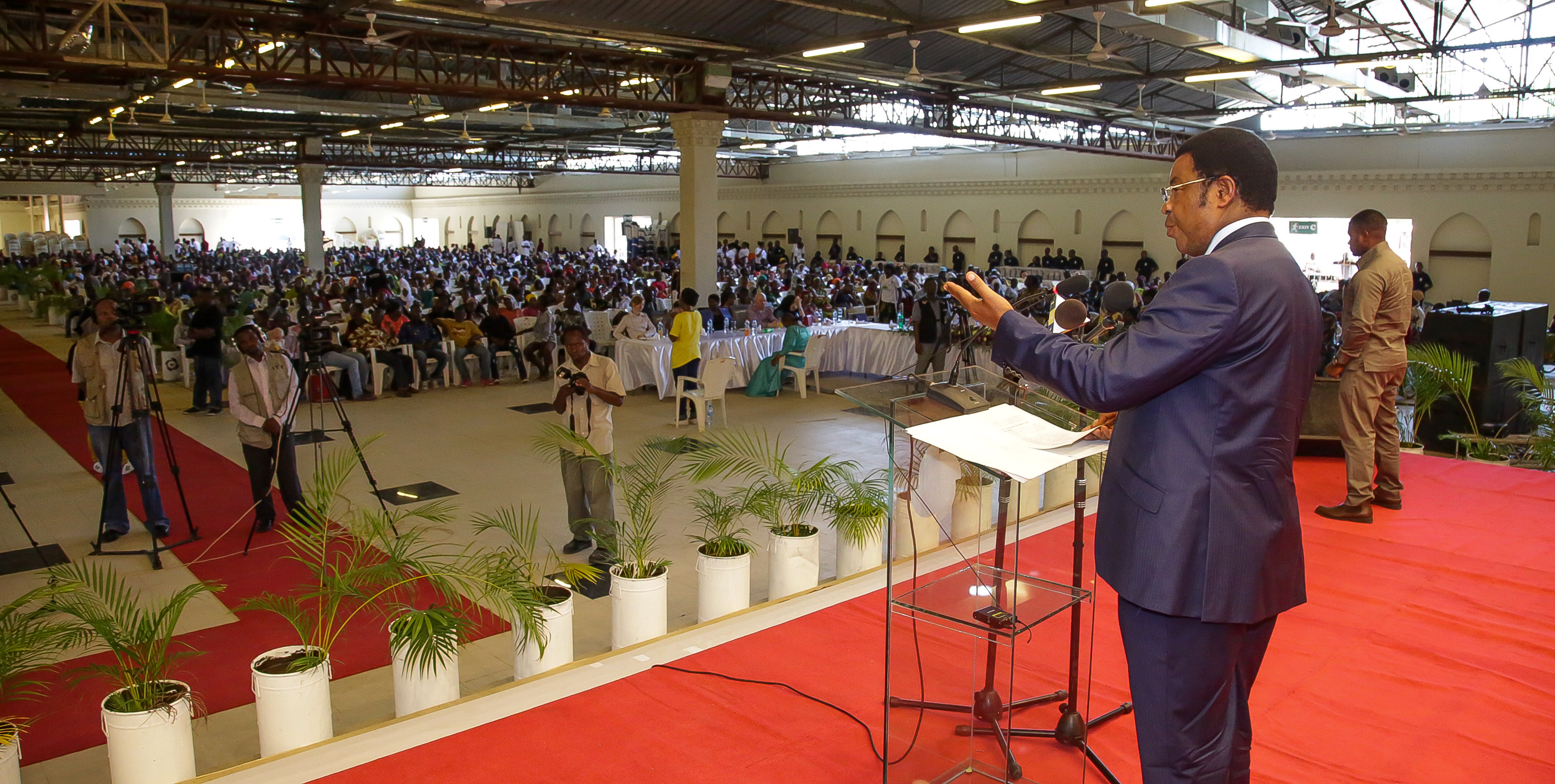 Waziri Mkuu, Kassim Majaliwa akizungumza na wananchi walioshiriki katika hafla ya chakula cha mchana kwa ajili ya watu wenye ulemavu, iliyofanyika kwenye ukumbi wa Diamond Jubilee. Februari 4, 2018.