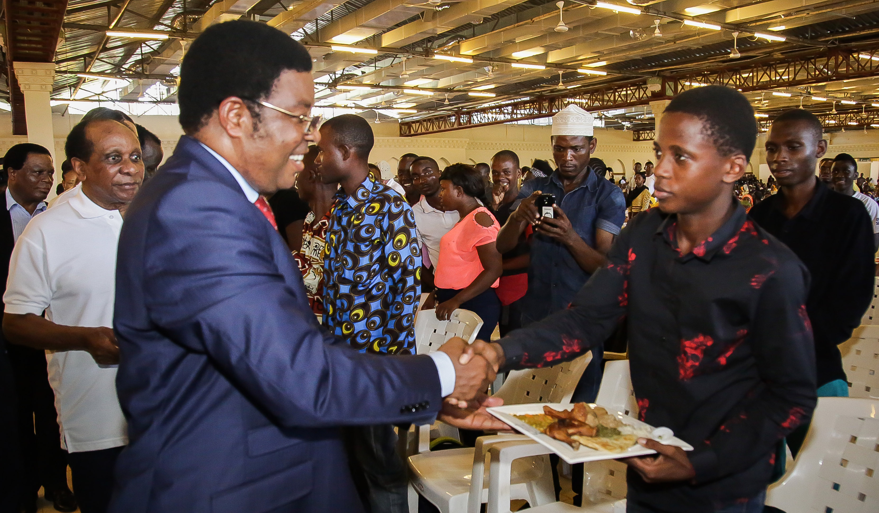 Waziri Mkuu, Kassim Majaliwa akimpatia chakula mtoto Ibrahim Shaibu, katika hafla ya chakula cha mchana kwa ajili ya watu wenye ulemavu, iliyofanyika kwenye ukumbi wa Diamond Jubilee. Februari 4, 2018.