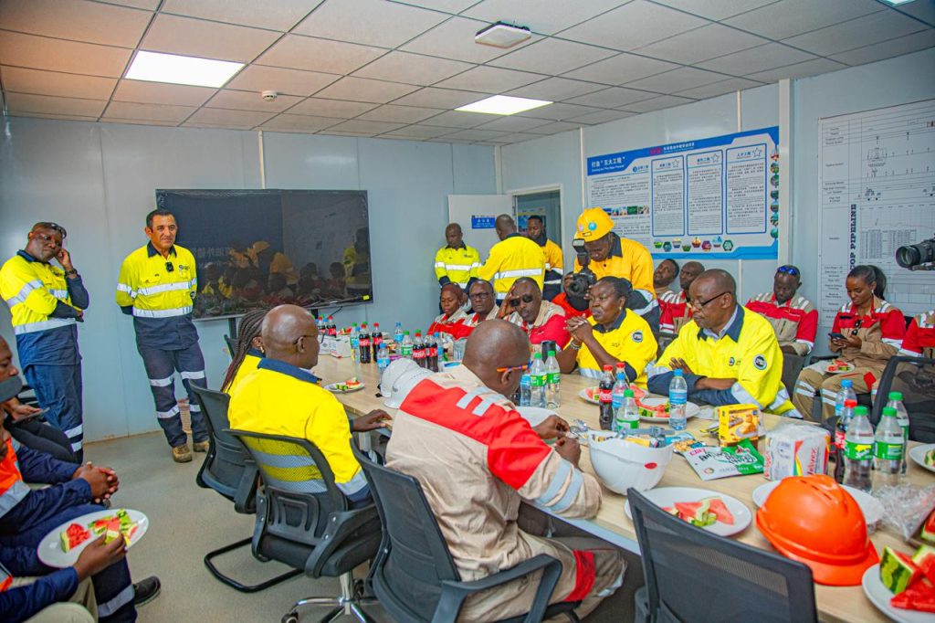 Akiwa katika kambi hiyo, Waziri Nankabirwa alijionea shughuli za uunganishaji wa mabomba katika eneo lenye urefu wa kilomita 2.5, na kueleza kuridhishwa kwake na ubora wa kazi inayotekelezwa na upande wa Tanzania, akisema ni ya kupongezwa sana.