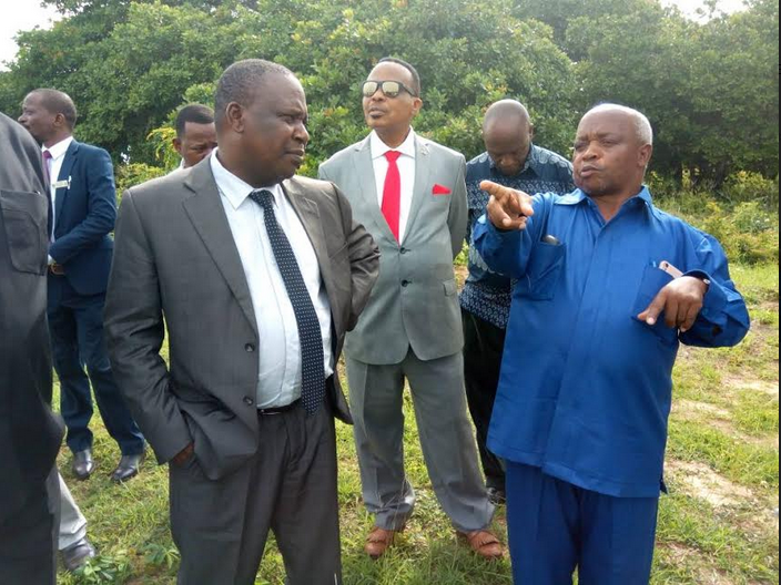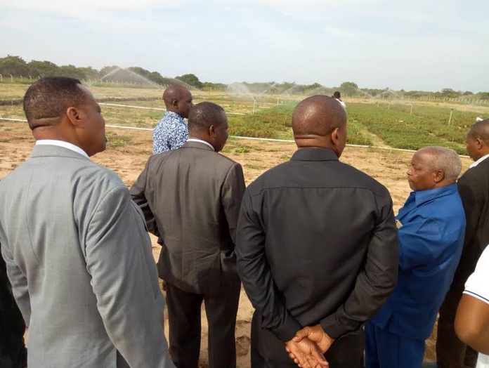 Waziri wa Kilimo Dkt Charles Tizeba akioneshwa Shamba la Mfano la Karanga lililopo Taasisi ya Utafiti ya Kilimo NALIENDELE Iliyopo Mkoani Mtwara.