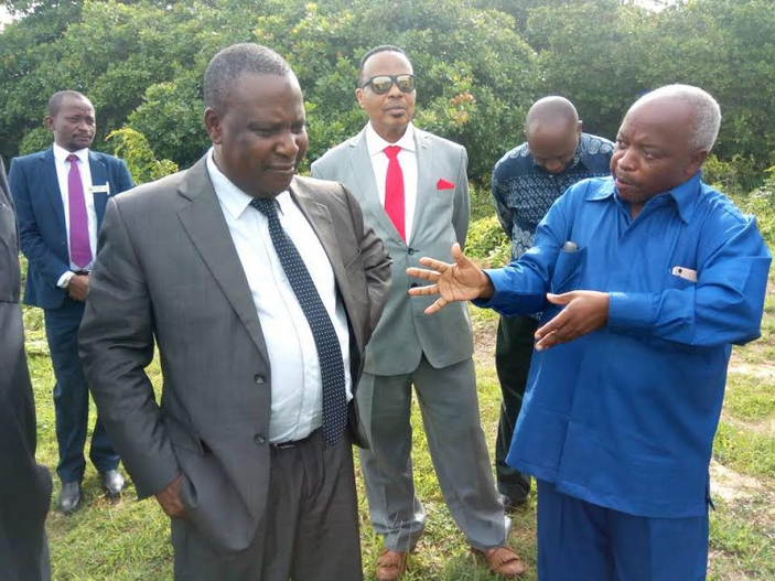 Waziri wa Kilimo Dr.Charles Tizeba akimsikiliza Mkuu wa Idara ya Udhibiti wa wadudu na Magonjwa wa Zao la Korosho Taasisi ya NALIENDELE Dr.Wilson Nene aliyevalia Tishet Nyeupe wakati waziri wa Kilimo Dr.Tizeba alipofanya Ziara katika Taasis Hiyo.