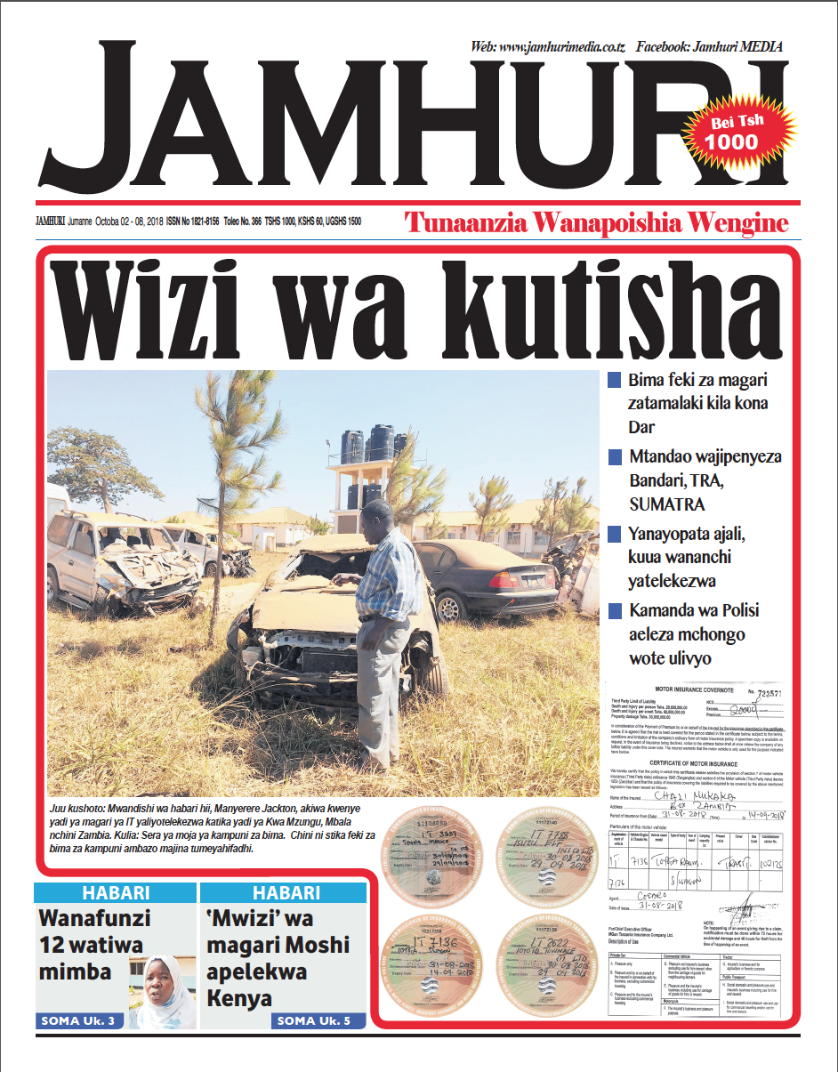 Uchunguzi uliofanywa na JAMHURI kwa miezi mitatu umebaini mtandao huo unaowahusisha baadhi ya watendaji waandamizi katika Bandari ya Dar es Salaam, Wakala wa Usafiri wa Nchi Kavu na Majini (SUMATRA) na kampuni za bima.