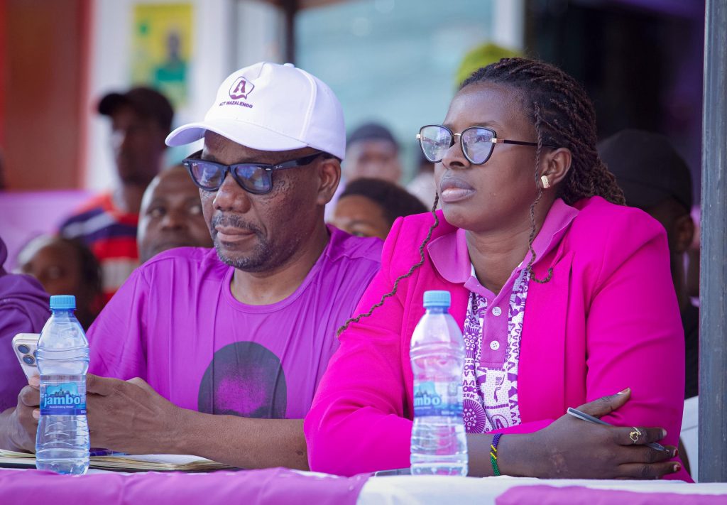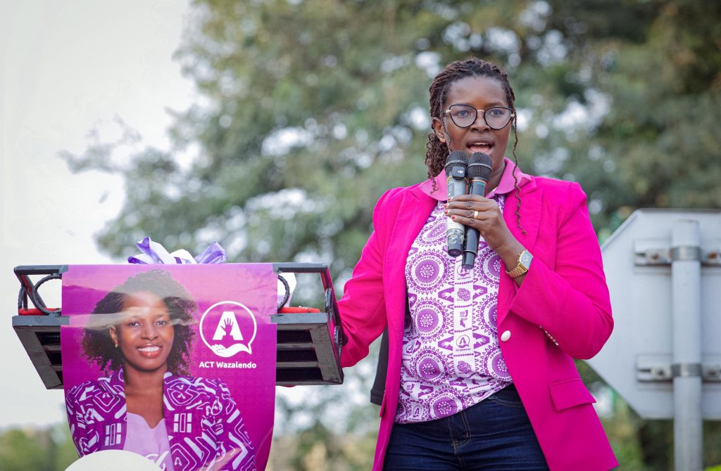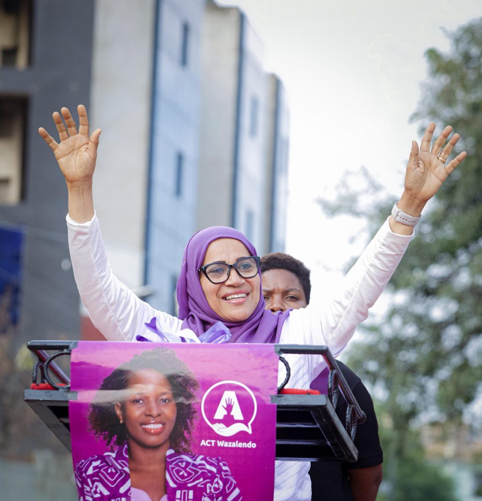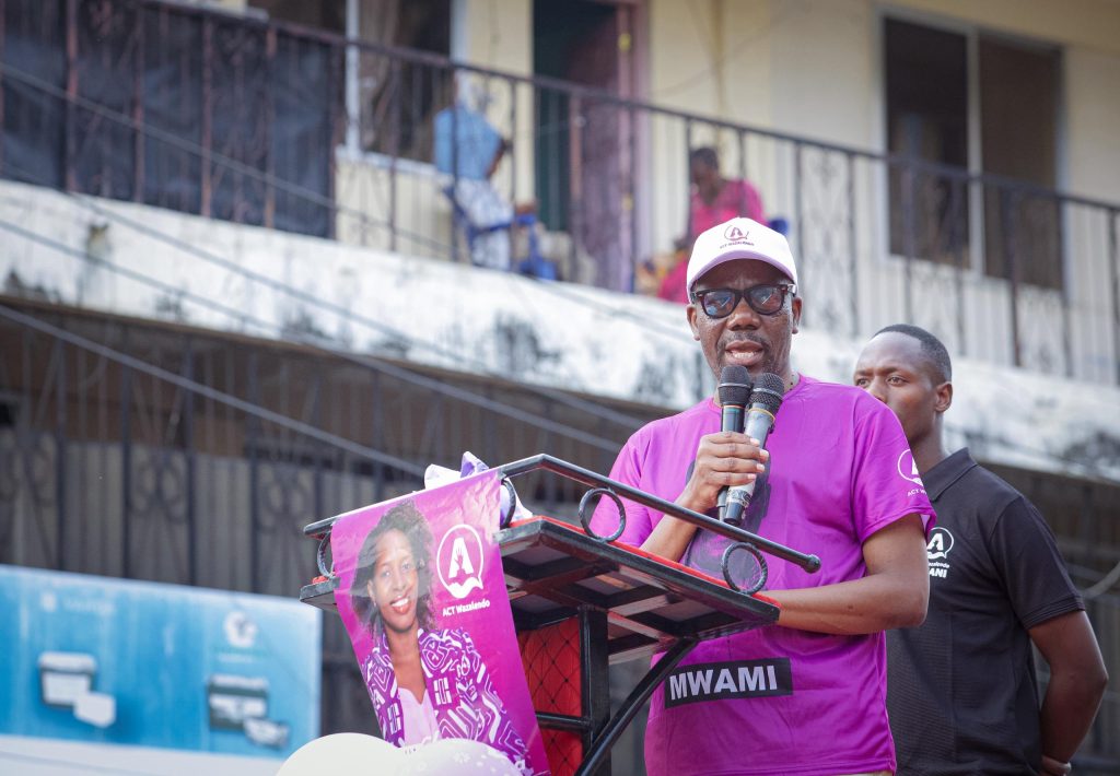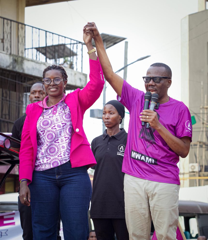 Kiongozi mstaafu wa ACT Wazalendo, Zitto Kabwe akimuombea kura mgombea ubunge wa chama hicho jimbo la Nyamagana, Esther Thomas wakati wa mkutano wa kampeni uliofanyika katika kata ya Mirongo jimboni hapo, mkoani Mwanza, Oktoba 14, 2025